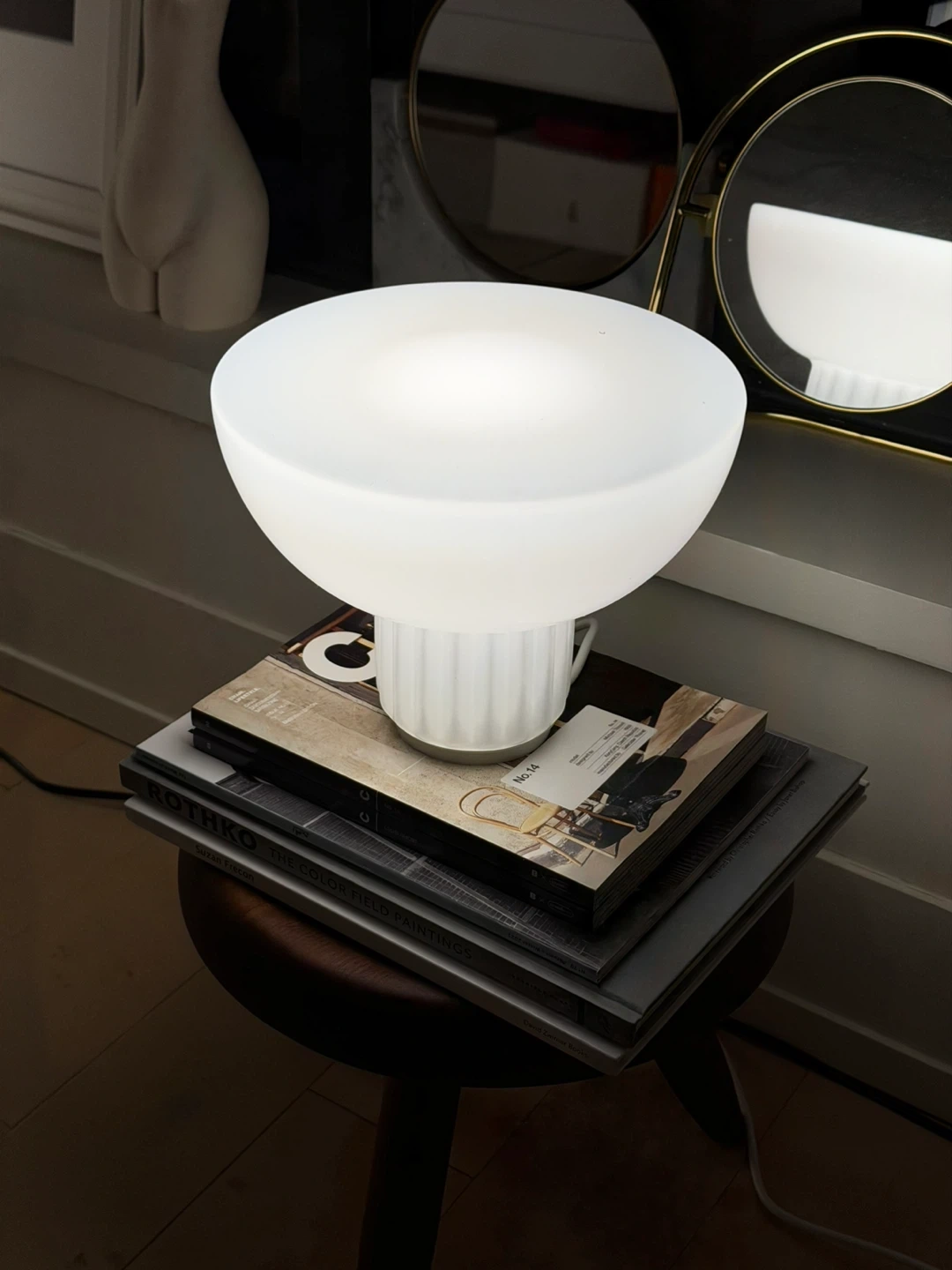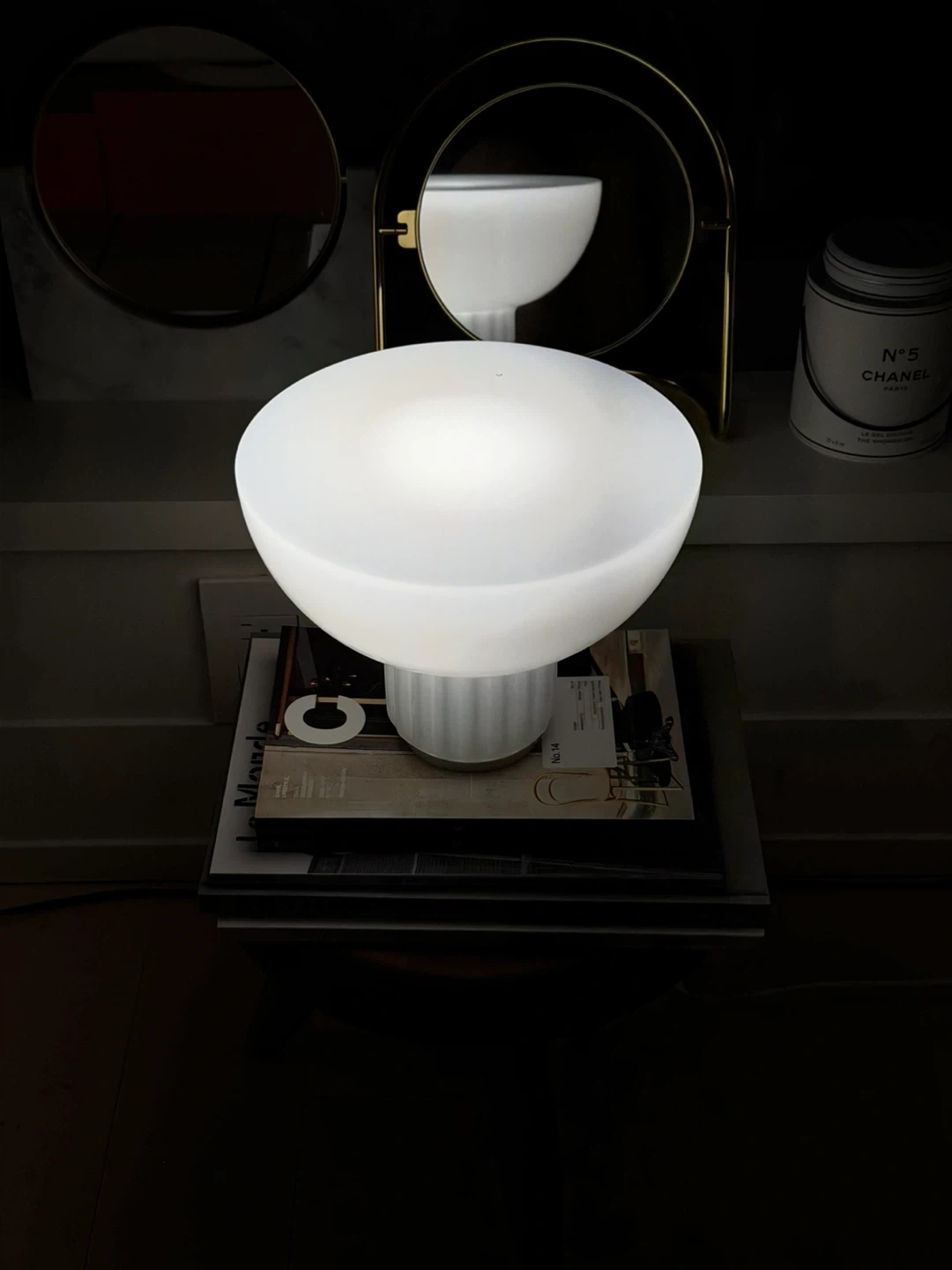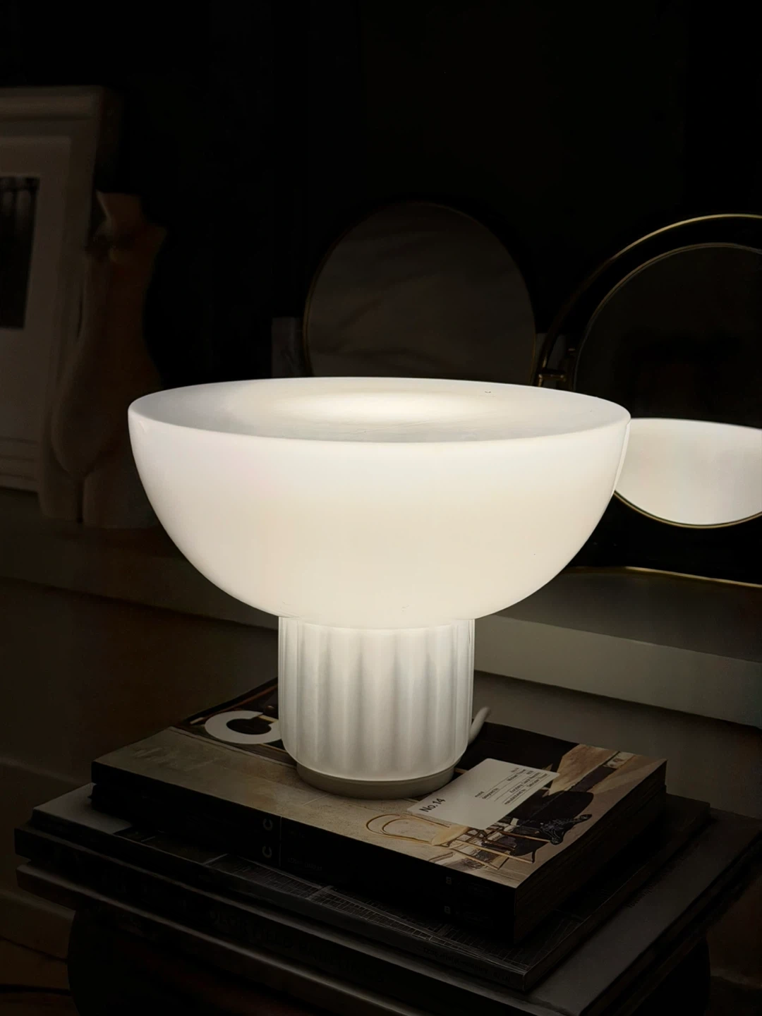The lamp provides a soft, ambient glow that works equally well for evening lighting or everyday use, blending seamlessly into modern, minimalist, or design-forward interiors.
