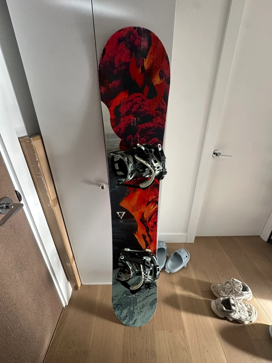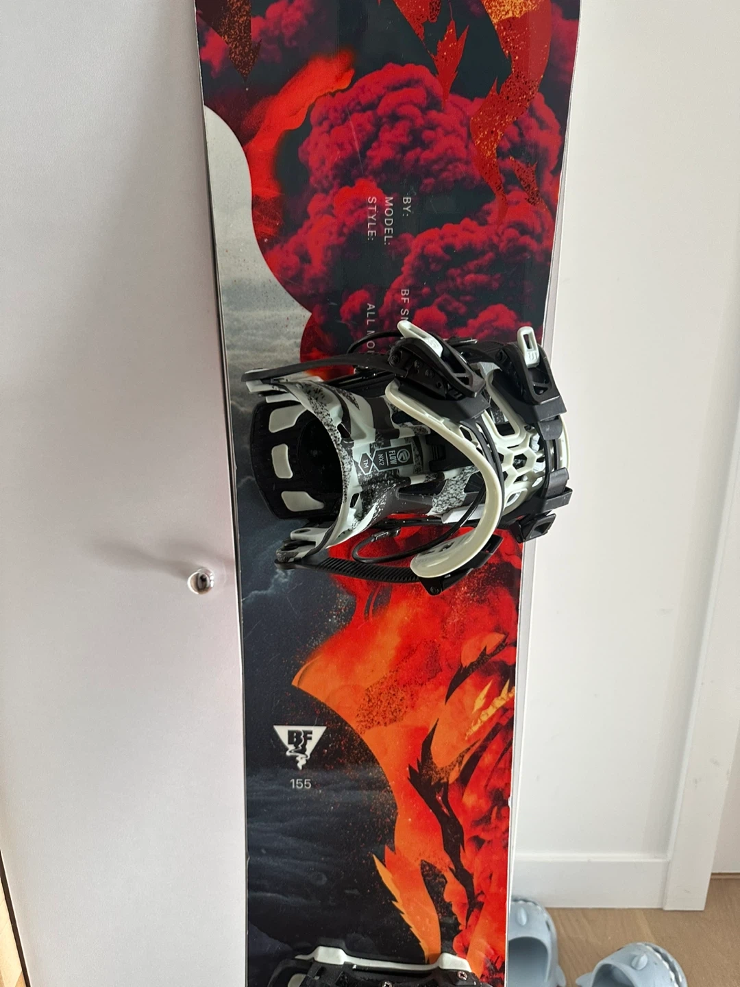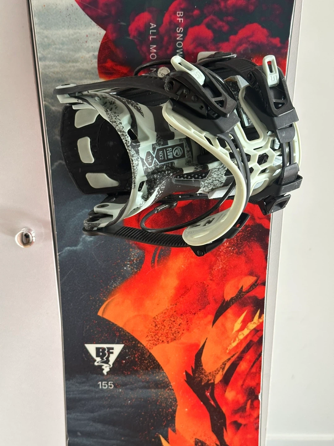 Selling a BF Snowboards All Mountain snowboard in size 155cm. It has a cool design with red and grey colours. Great for all mountain riding!