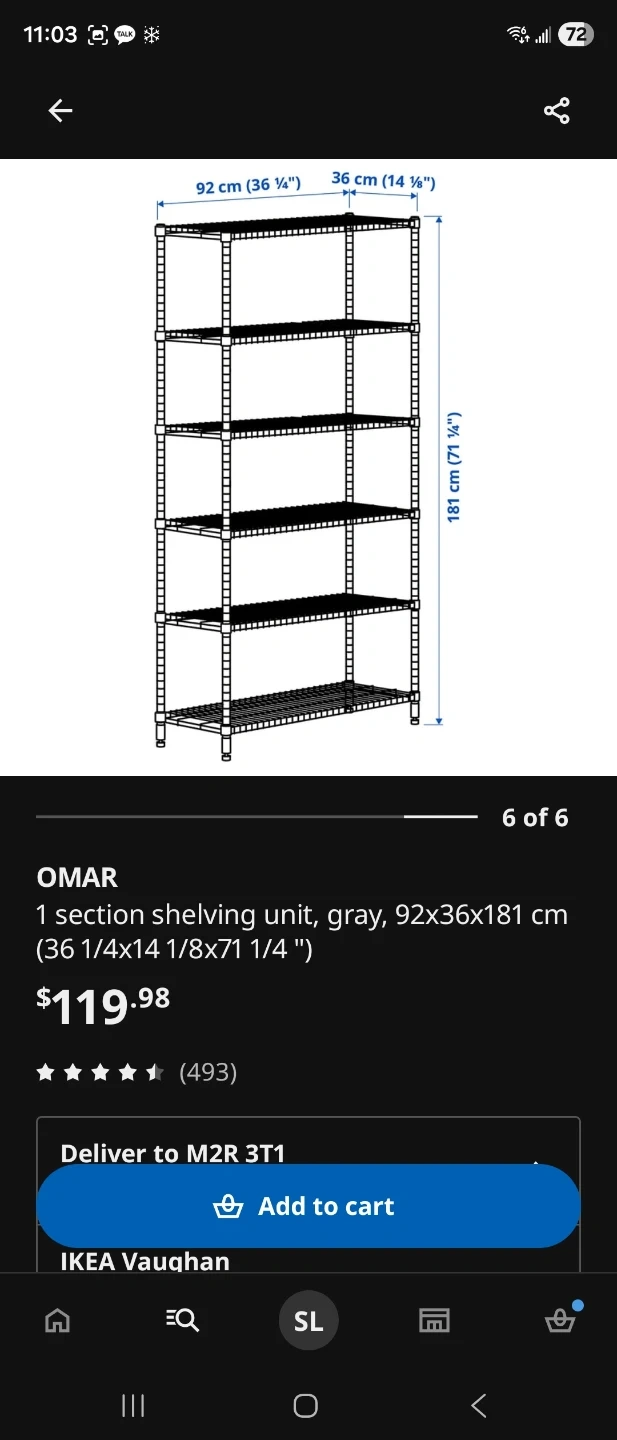 Selling an IKEA OMAR shelving unit in gray. It's in great shape and ready for a new space! The dimensions are 92x36x181 cm. Originally bought for $119.98