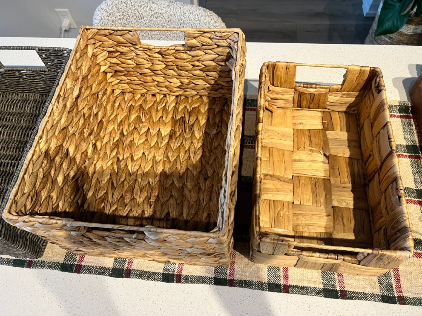 Set of 4 wicker storage baskets.