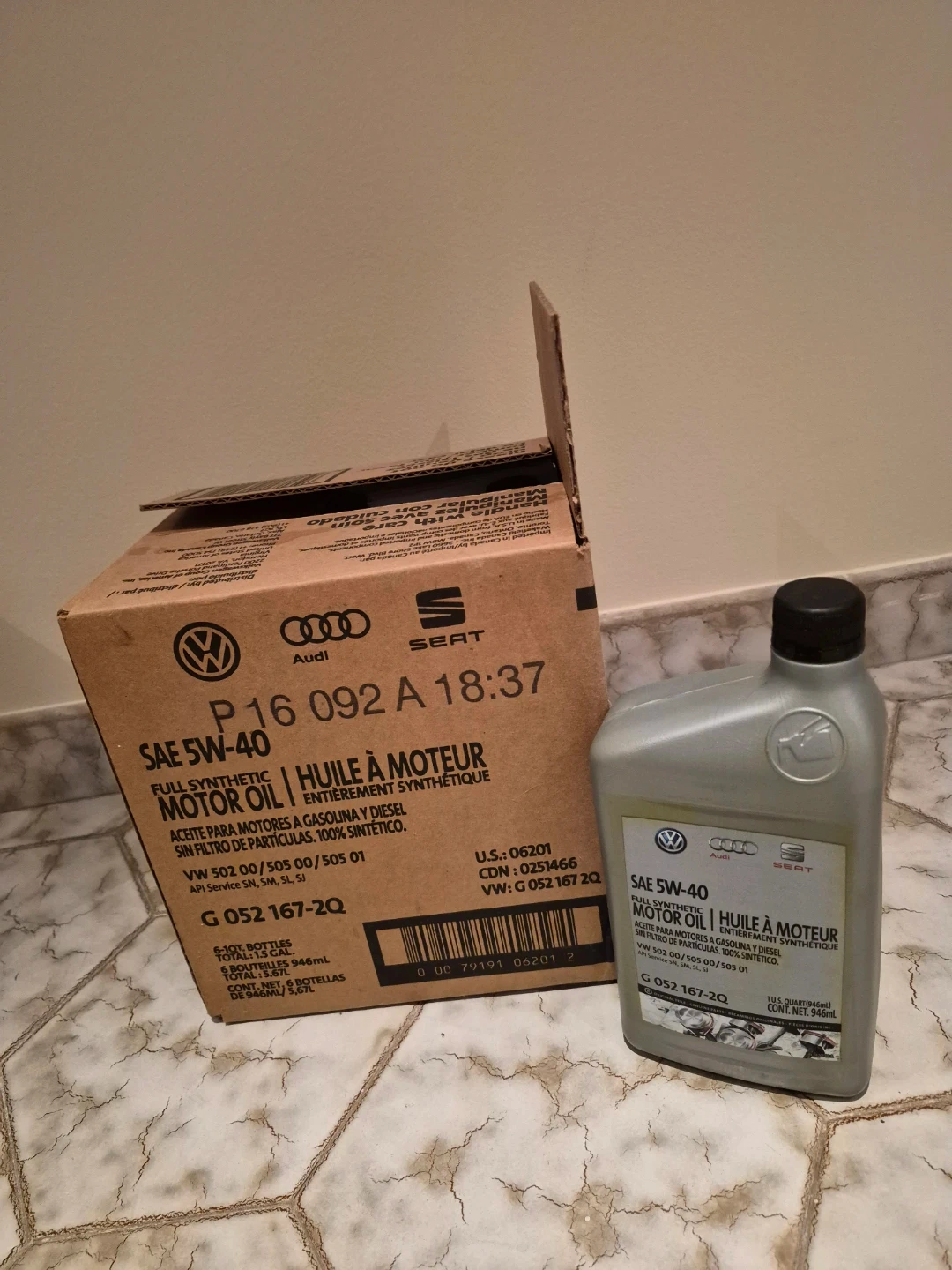 Selling a full bottle of VW/Audi/Seat SAE 5W-40 full synthetic motor oil. It's suitable for gasoline and diesel engines and is 100% synthetic. Meets VW 502 00/505 00/505 01 and API Service SN, SM, SL, SJ standards. Each bottle contains 946mL/1 U.S. quart