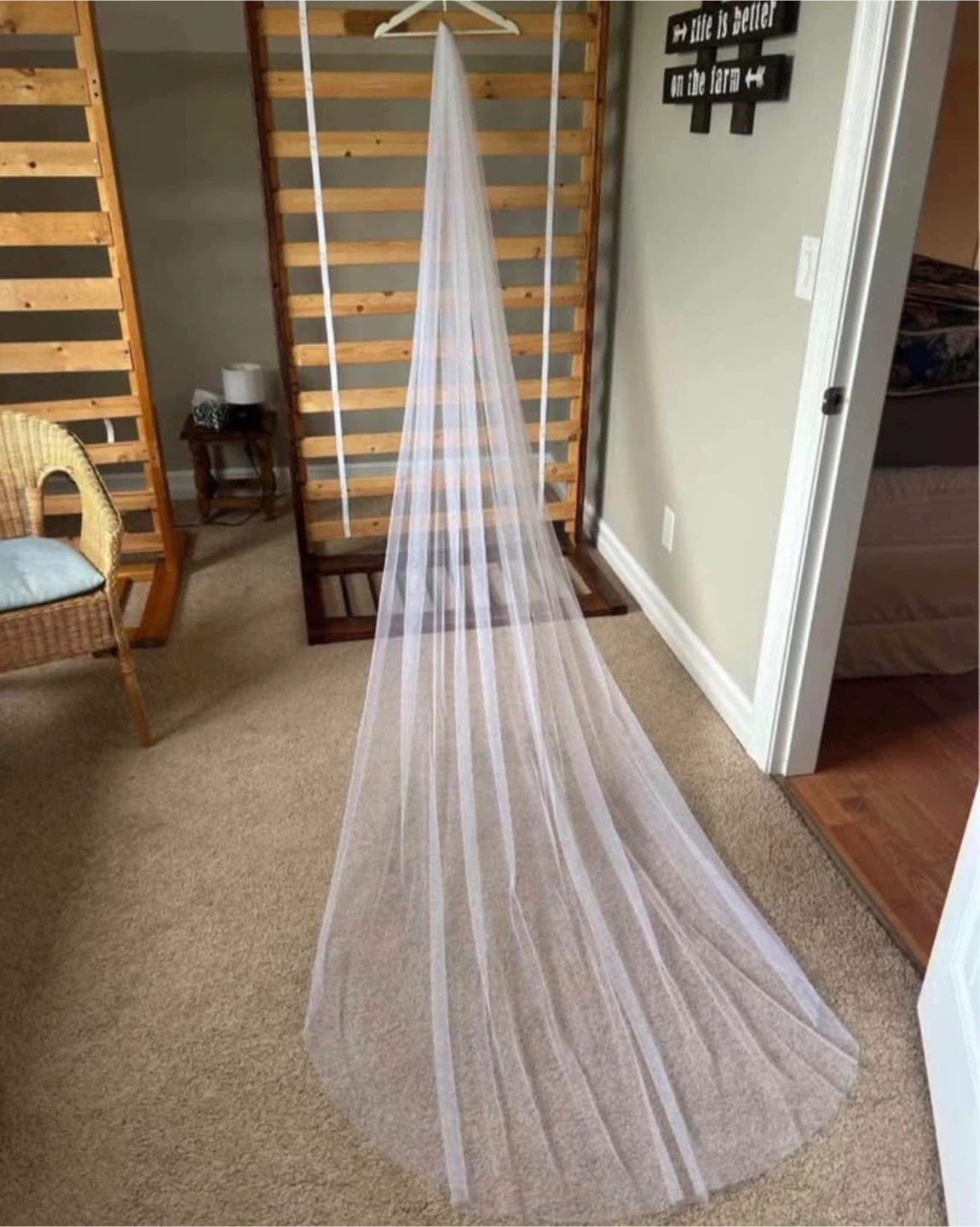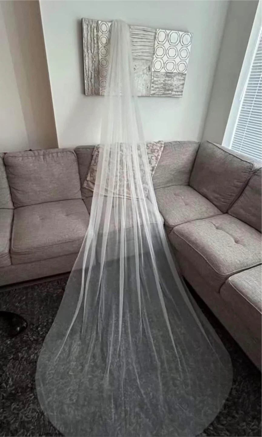 Selling a beautiful white wedding veil. It's in great condition and ready for your special day! The veil features a comb for easy attachment.