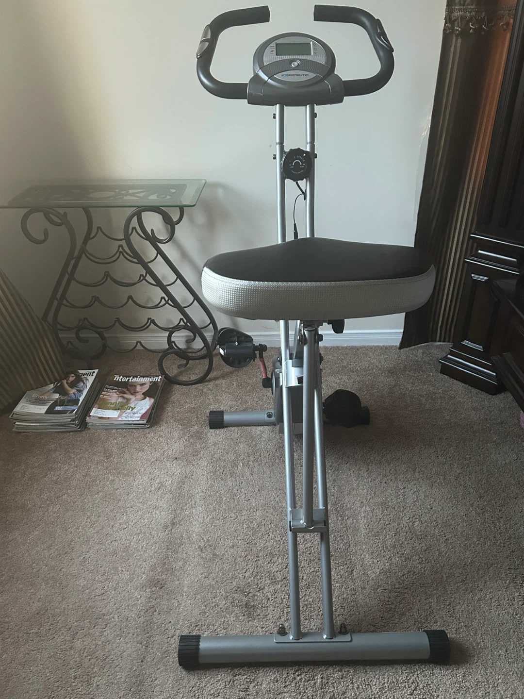 Get fit with this Exerpeutic folding exercise bike! It's in great shape and ready for a new owner. Perfect for small spaces, it folds up easily for storage when not in use. A simple and effective way to get your cardio in at home