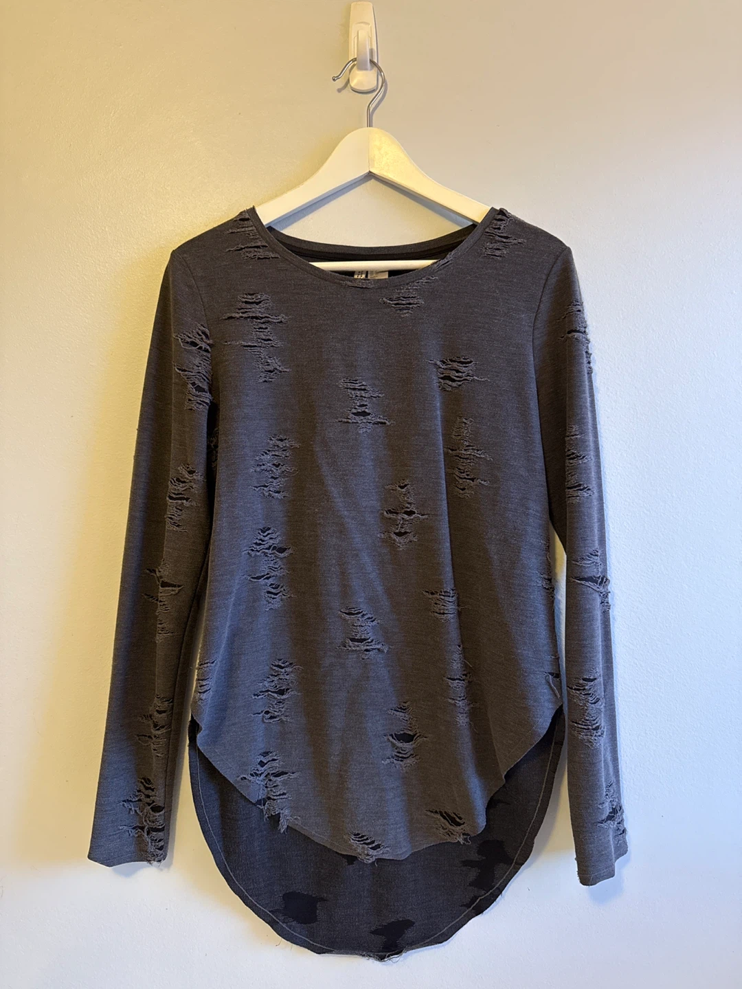 Selling a H&M Divided long sleeve top in size small! It features a unique distressed design. Great for layering or wearing on its own.