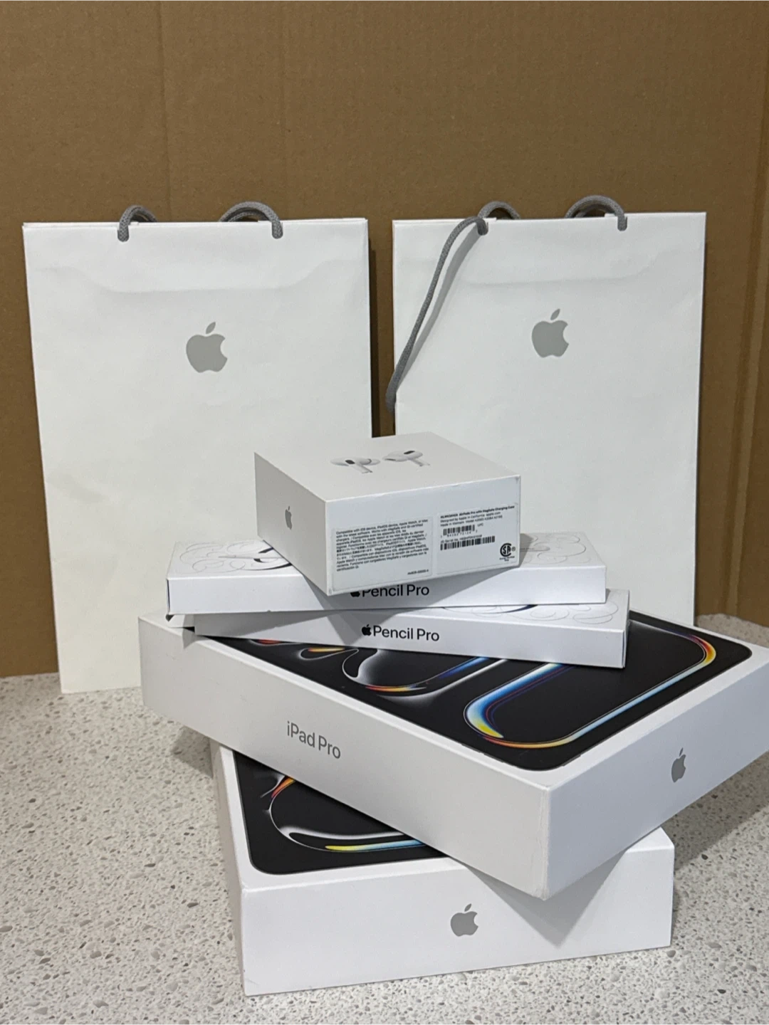 Selling a collection of Apple products empty boxes and paper bags including an iPad Pro, Apple Pencil Pro, and Airpods Pro. Feel free to message me if you're interested!
