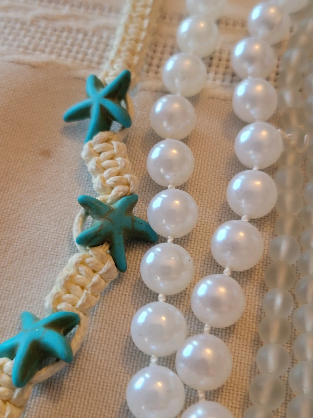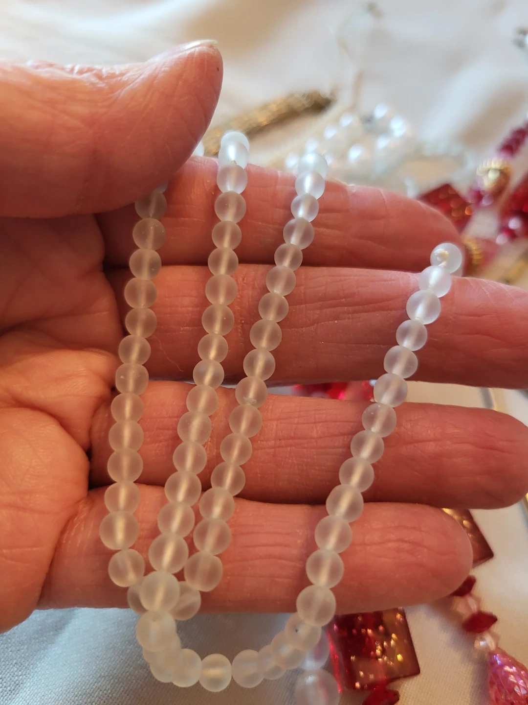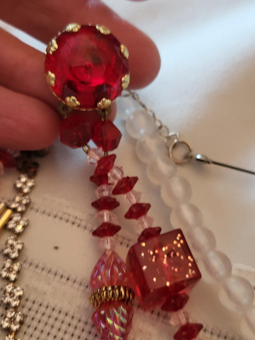 Selling a collection of assorted costume jewellery necklaces. There's a variety of styles, including beaded necklaces with pearls, colourful accents, and unique designs. Perfect for adding some sparkle to your outfits!