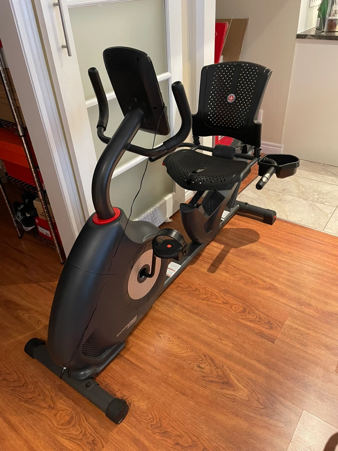 Get your cardio in with this Schwinn 230 recumbent exercise bike! It's in great shape and ready for a new workout buddy. The display shows distance, time, and calories burned, so you can track your progress. It also has different programs and resistance levels to challenge yourself.