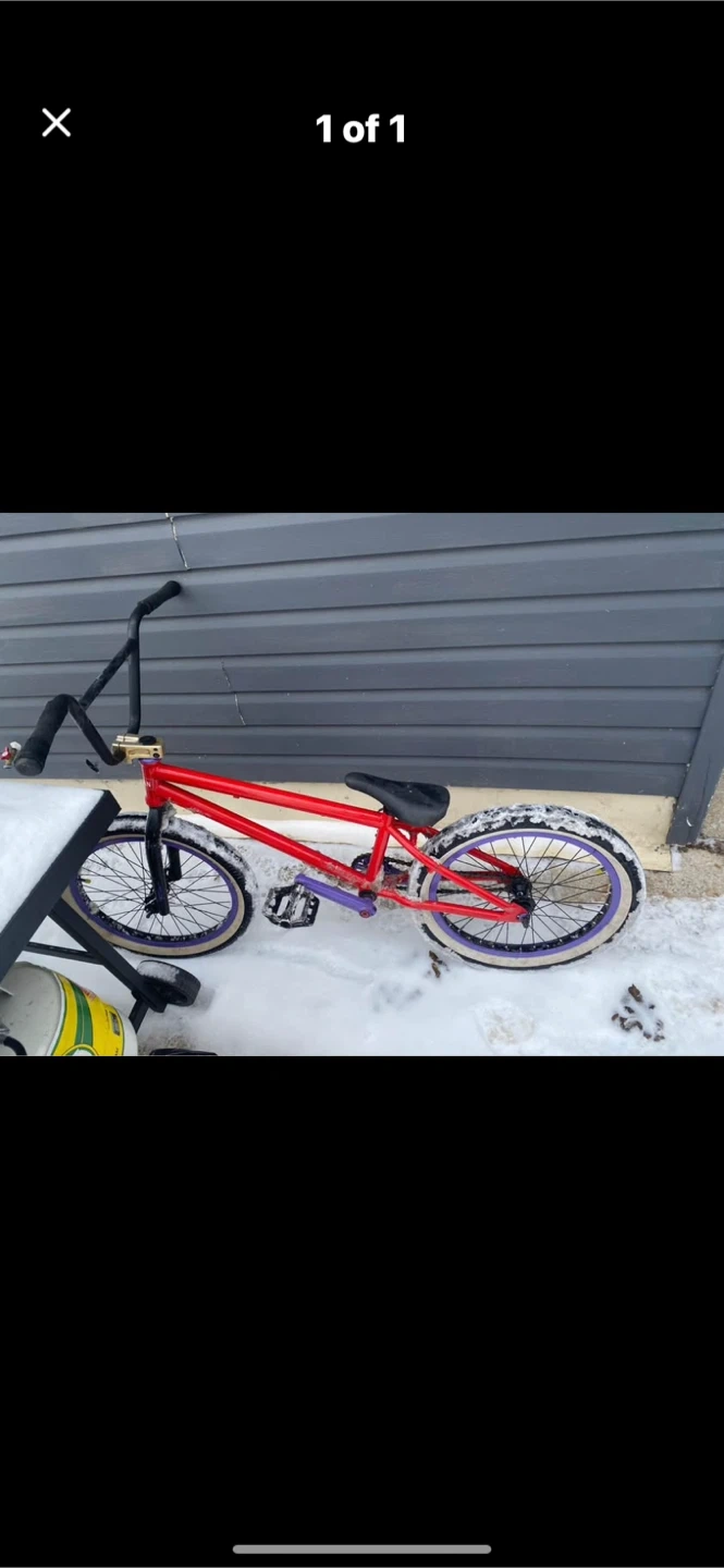 Buy & SellRed BMX BikeRed BMX Bike$795Selling a red BMX bike. It has purple pedals and purple rims.WHERE TO MEETCheck LocationView MapSELLERStewieE Ward150 reviews0 chats·0 favorites·9 viewsSEND CHAT TO SELLERHi Stewie! I’m interested in your listing.Hi Stewie! I’m interested in your listing.Get the Karrot app to chatSign In to chat