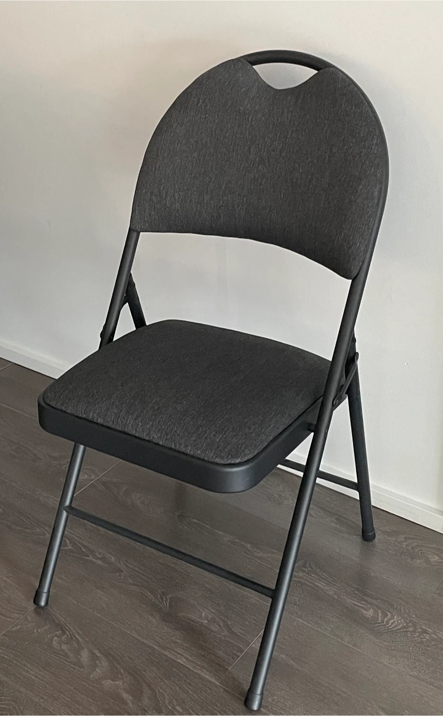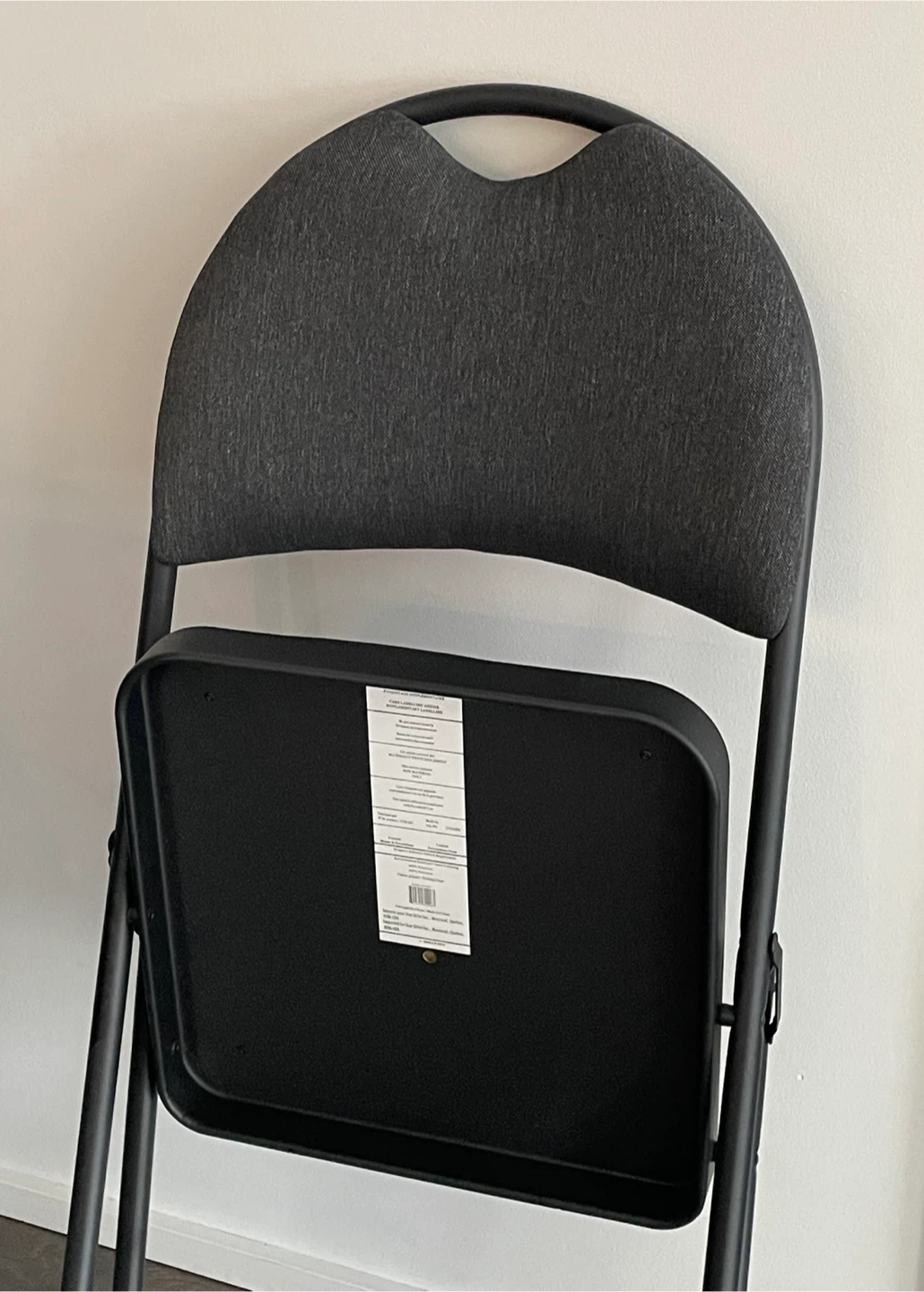 Selling Mainstays black folding chair.