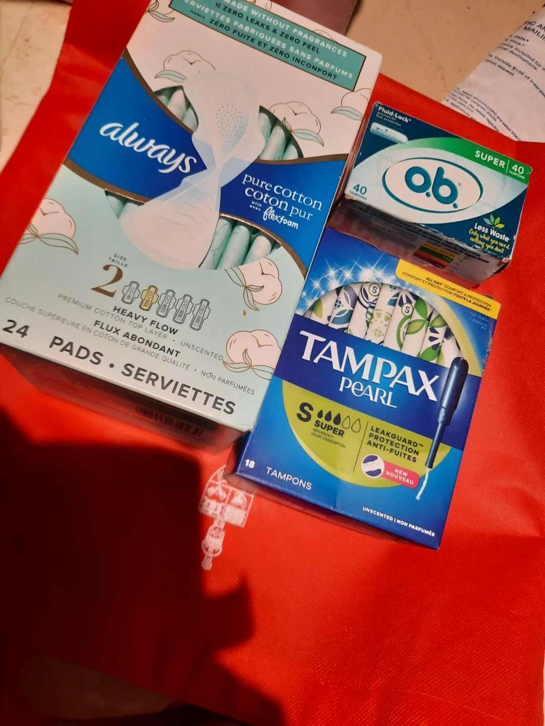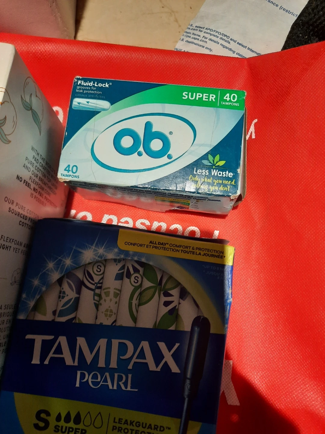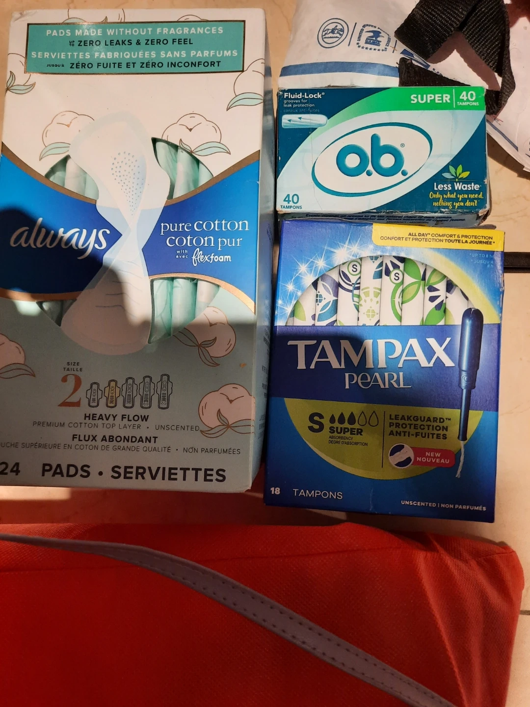 18 Super Tampax tampons, 24 pads Always pure cotton, OB 40 count Super tampons, 12 Femline pads with wings