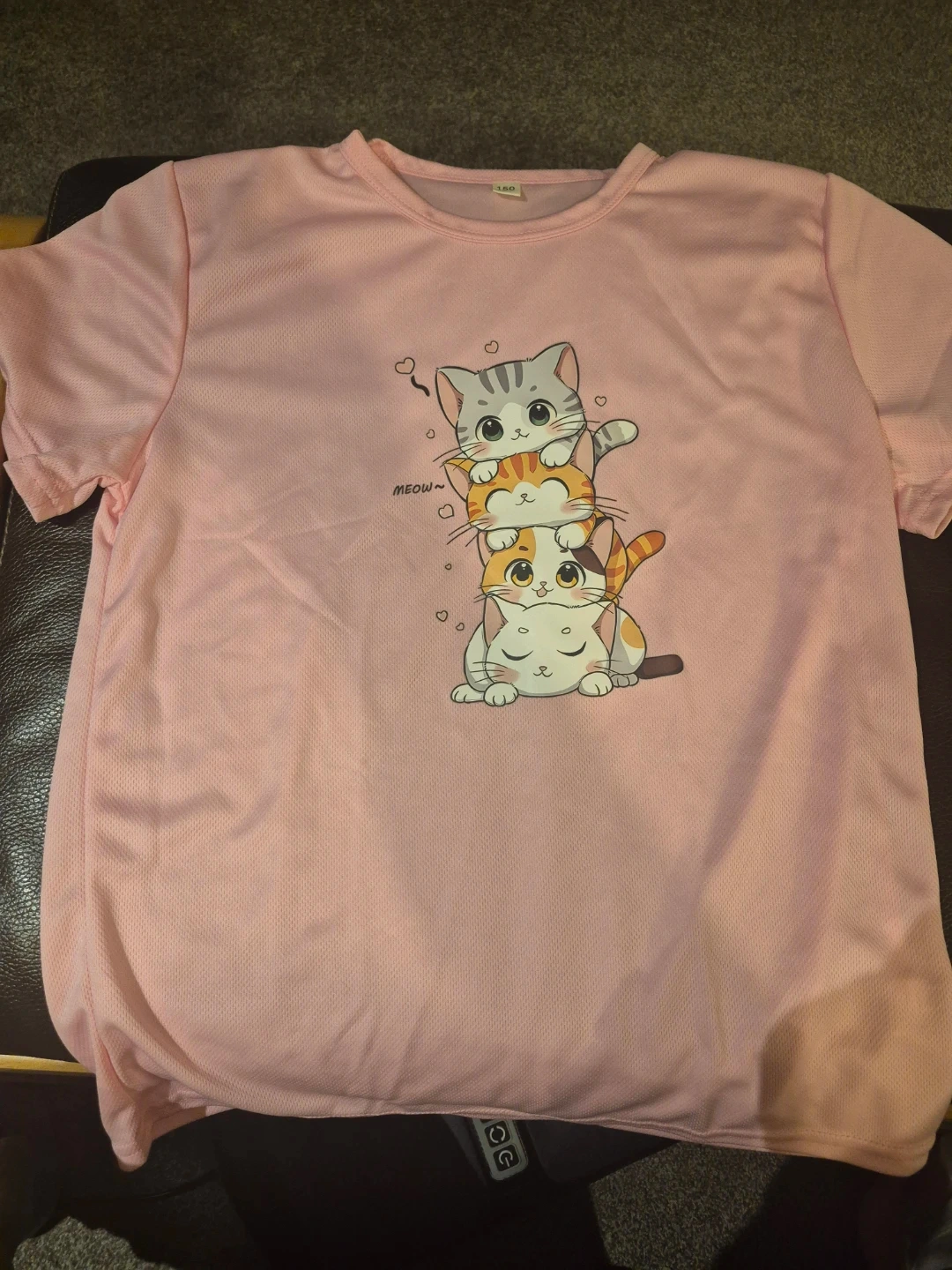 Cute pink t-shirt with a stack of adorable cats printed on the front! The shirt is a size for an 7 or 8 yr old and in excellent condition. Brand new never worn