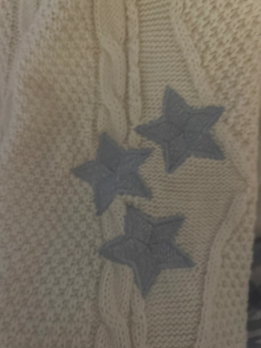 Selling a cozy Taylor Swift cardigan in an oversized fit! It's a cream colour with cute star details. Perfect for any Swiftie looking to stay warm and stylish brand is köstebek.