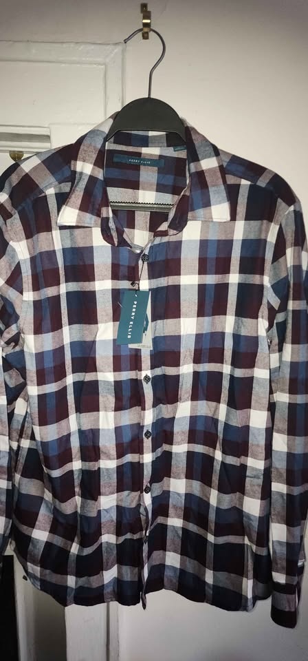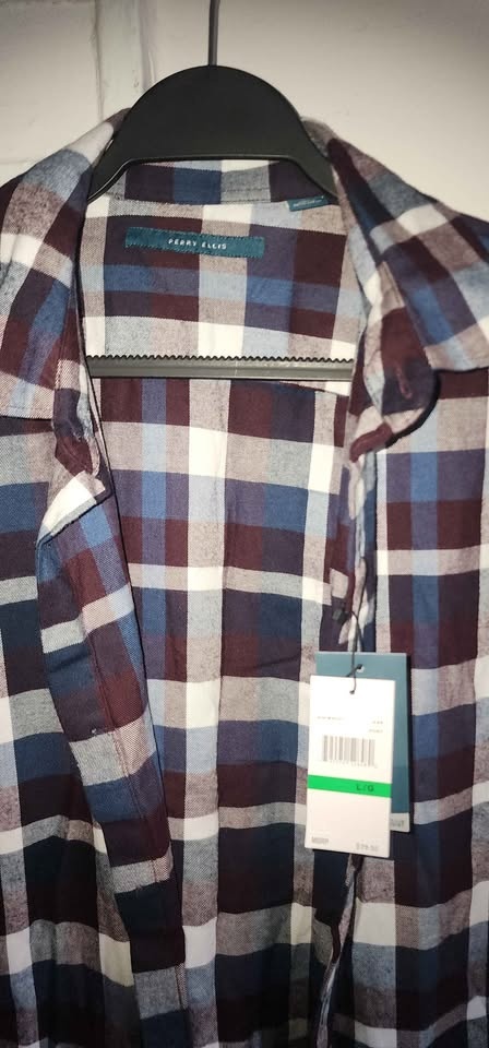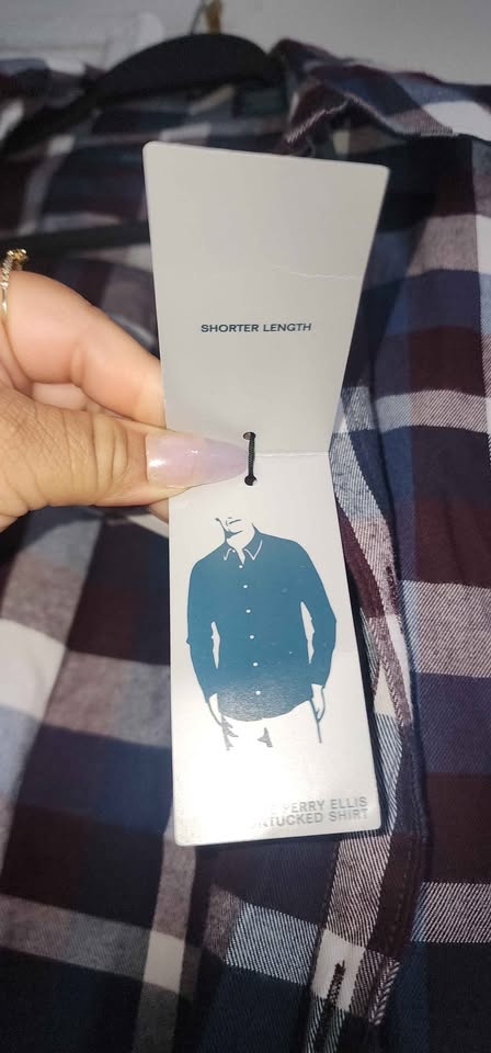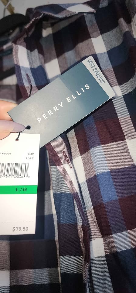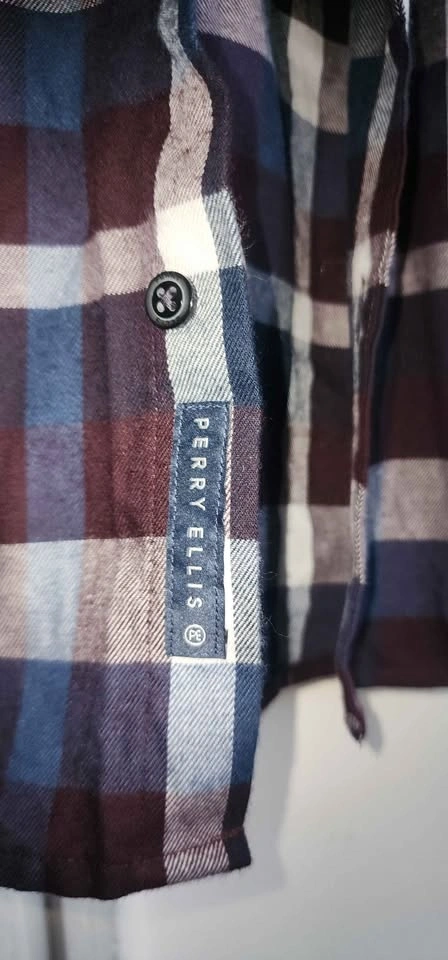 Perry Ellis long-sleeve plaid shirt for men.