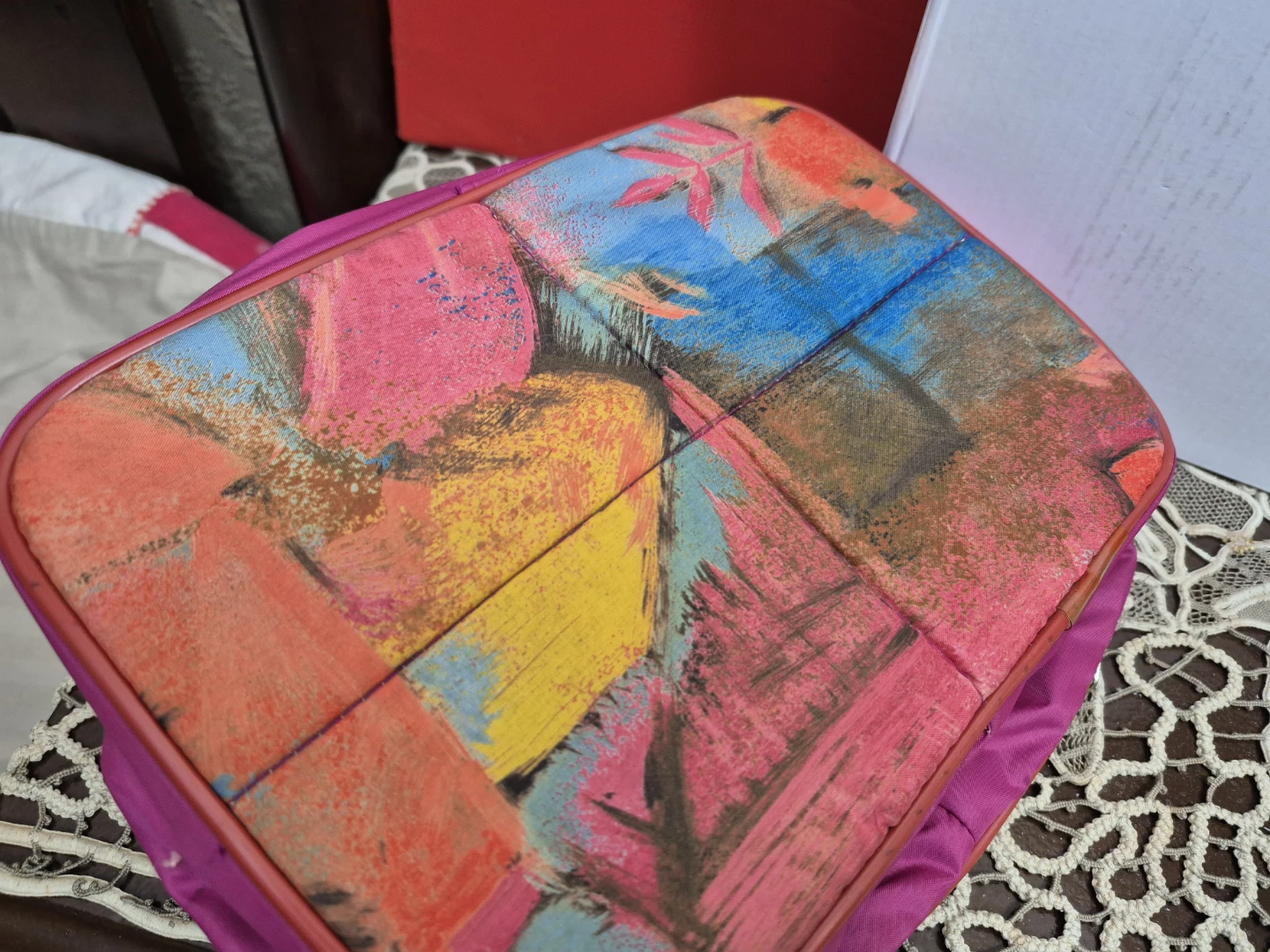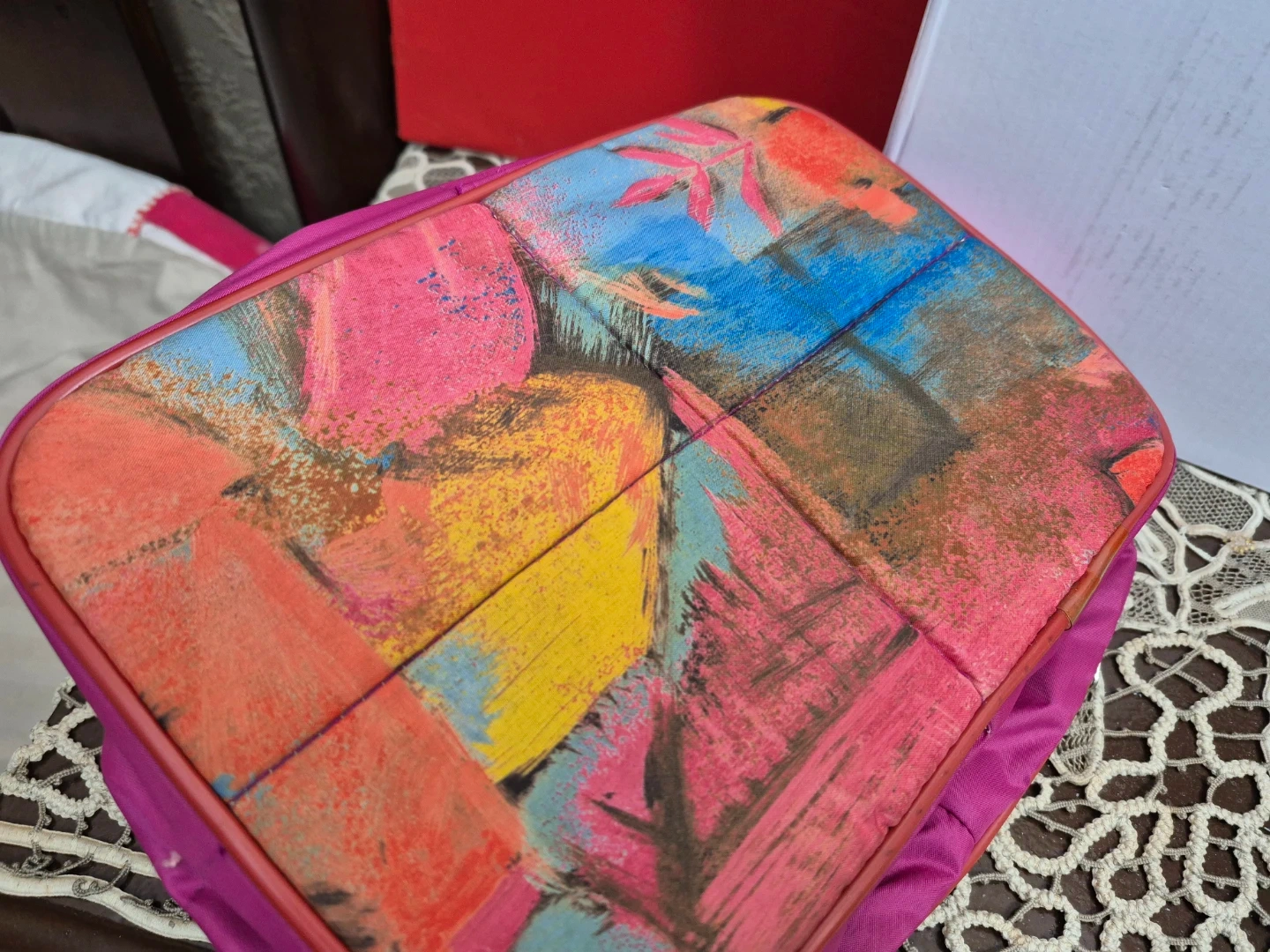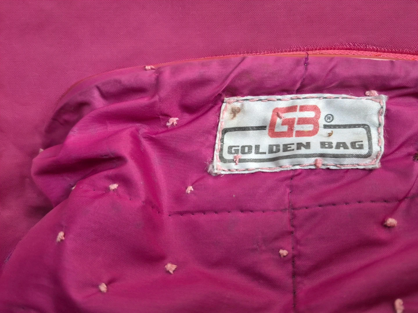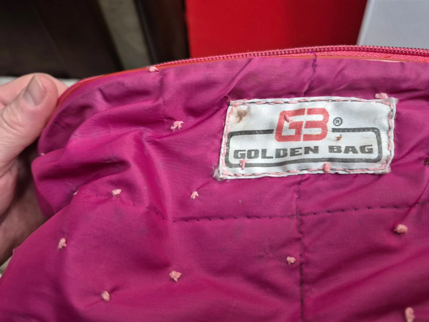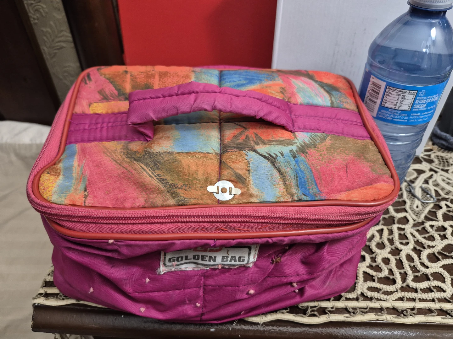 This Golden Bag cosmetic case is perfect for travel or home organization! It features a vibrant, colourful design and a convenient handle.