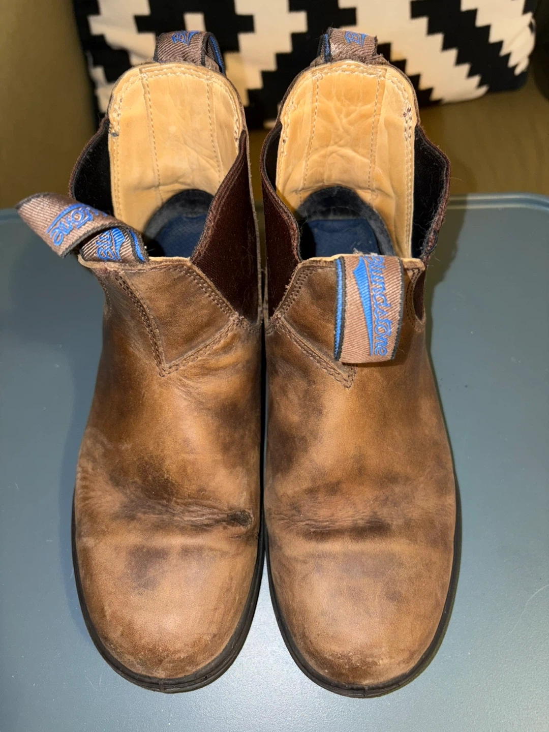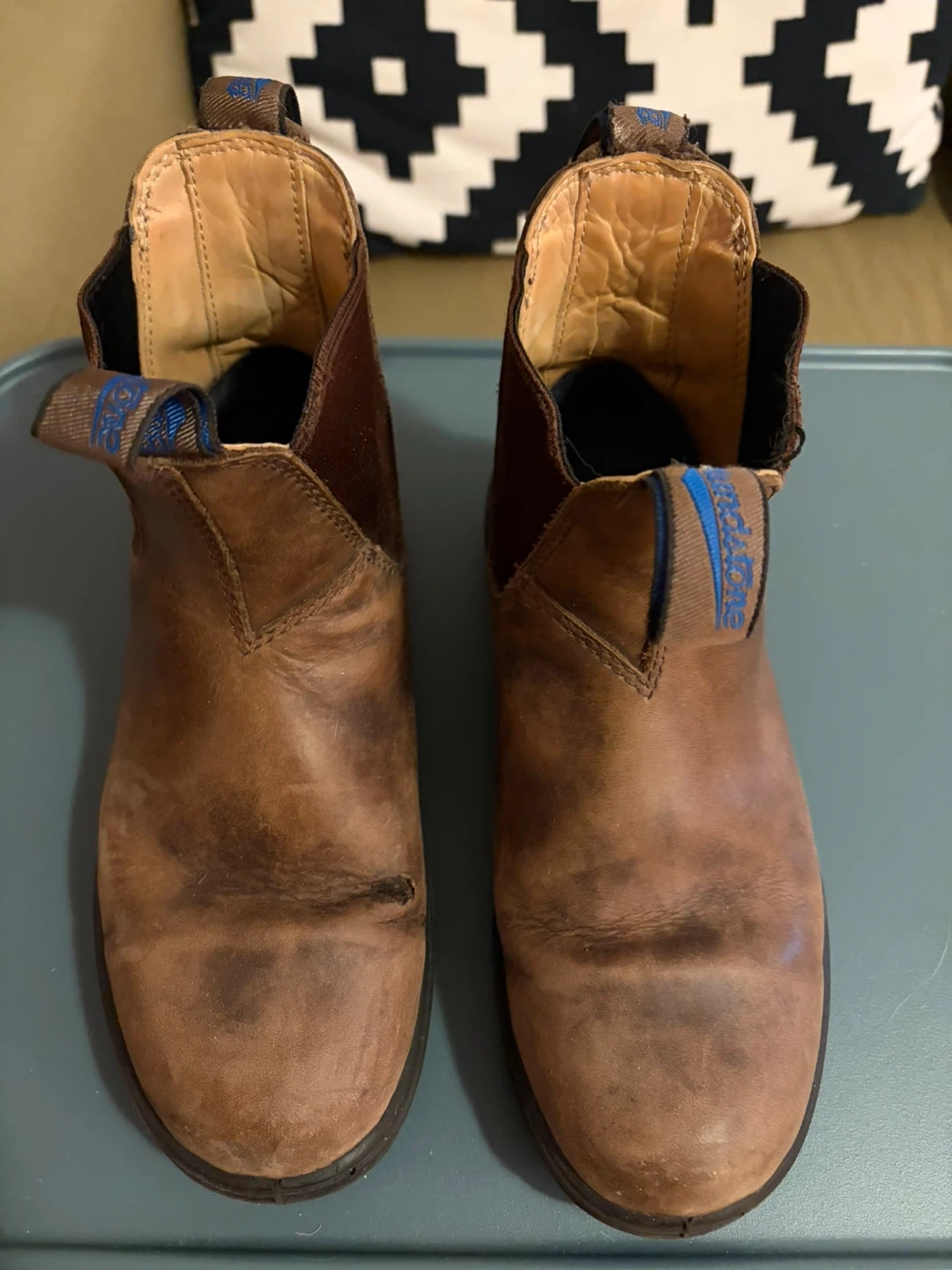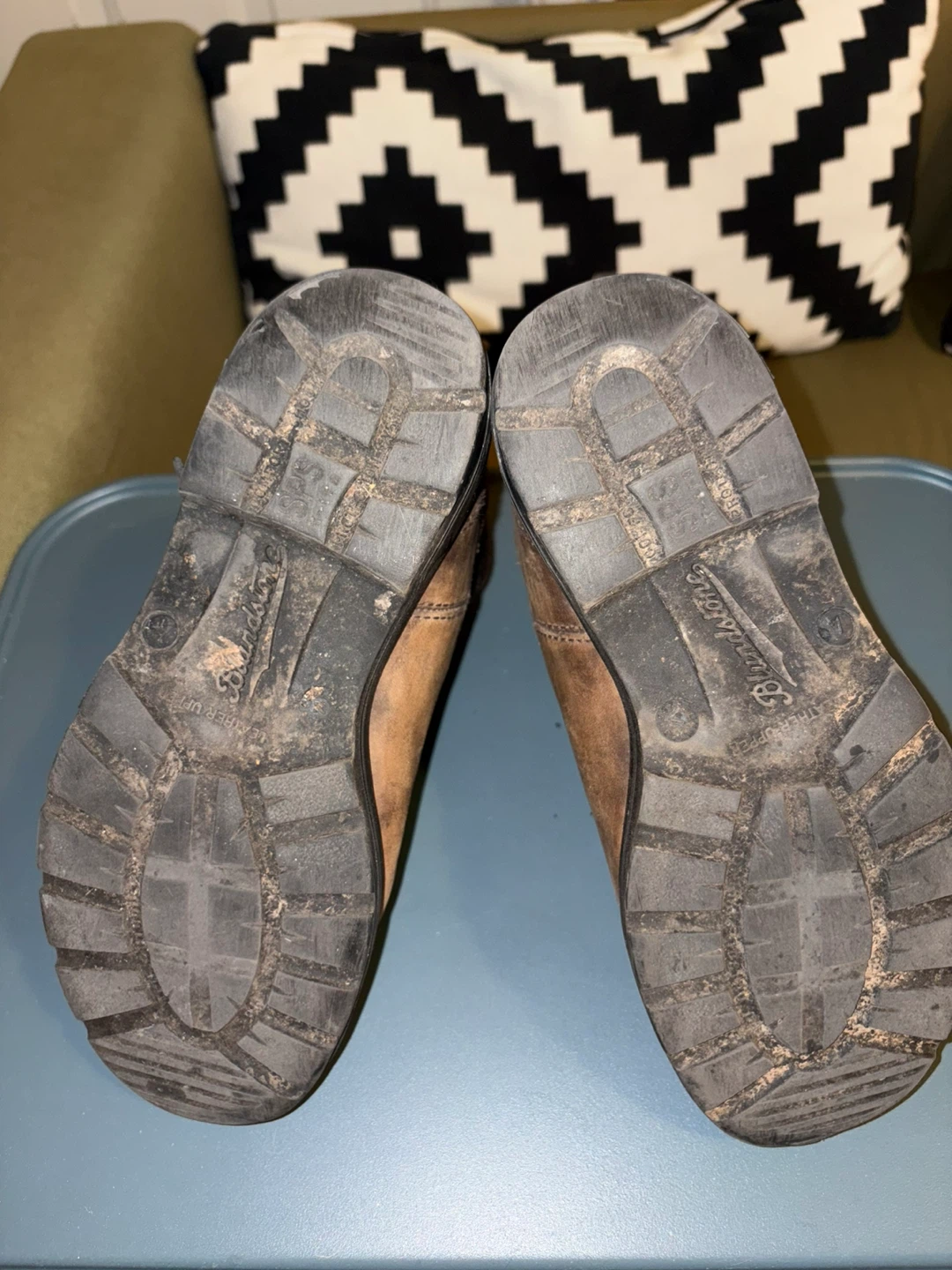 Selling a pair of well-loved Blundstone boots. They show signs of wear, especially on the soles, as shown in the photos. Women’s size 7. The body of the boot is good, but the soles need to be replaced. Blundstone said they wouldn’t change them. Free to anyone that wants them. Pick up only.