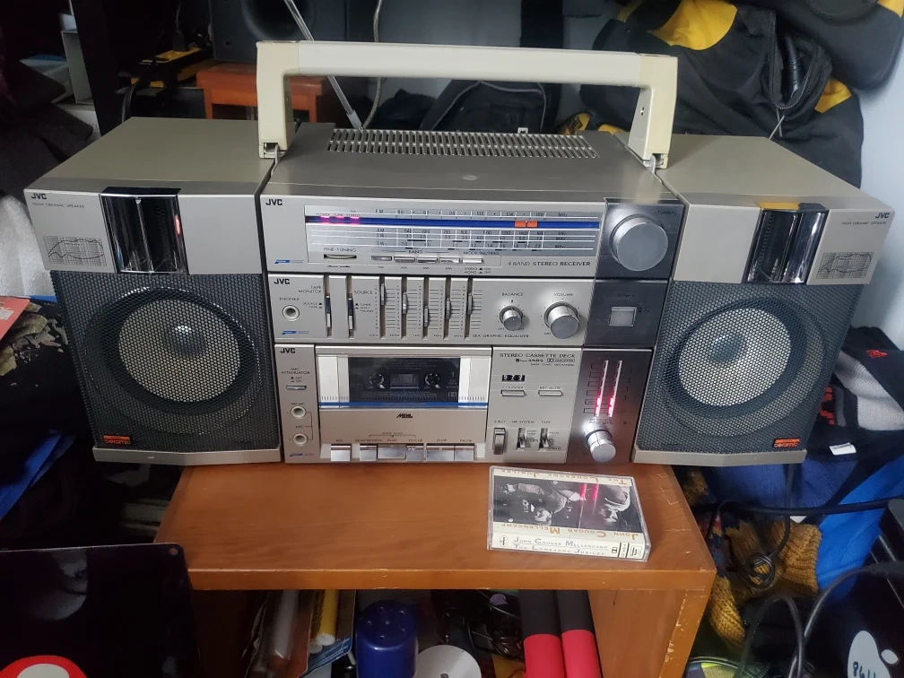 1982 JVC PC11 Portable AM-FM-SW Cassette Radio Player with Phono input, 5 piece Detachable unit, AC/DC, Clean Battery Compartment, Straight Antenna in Excellent Cosmetic and Working Condition. $250