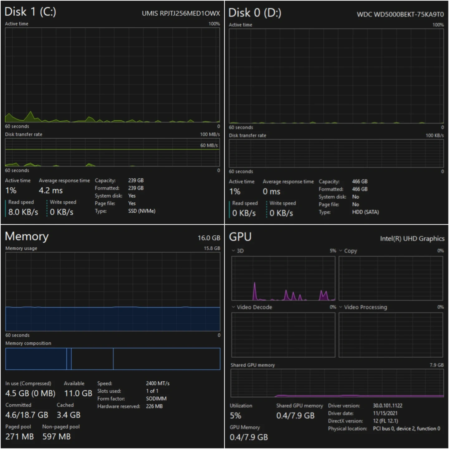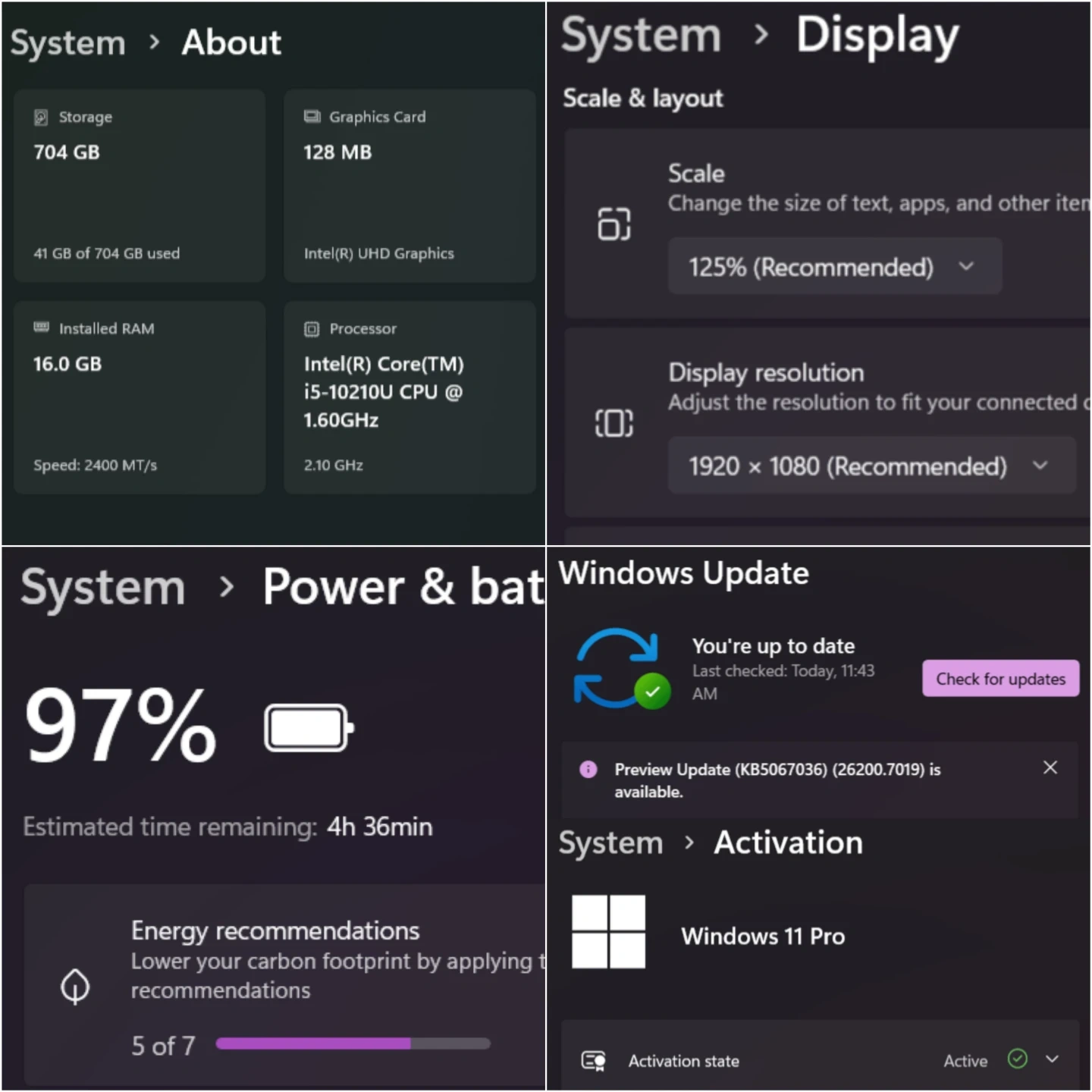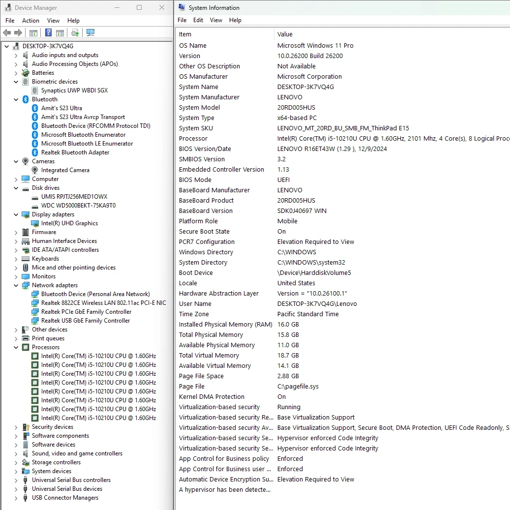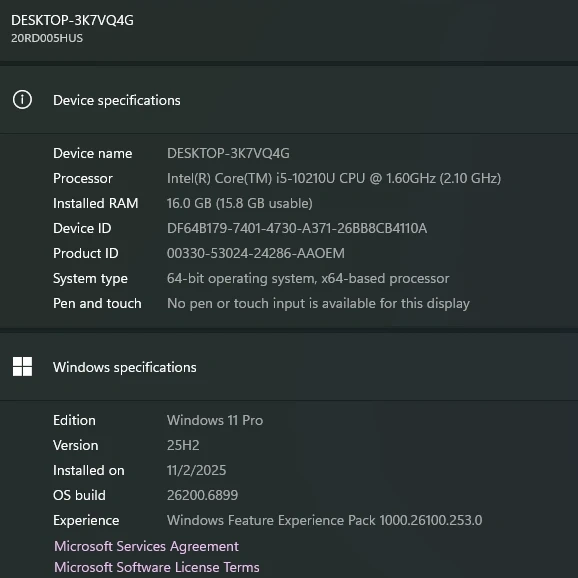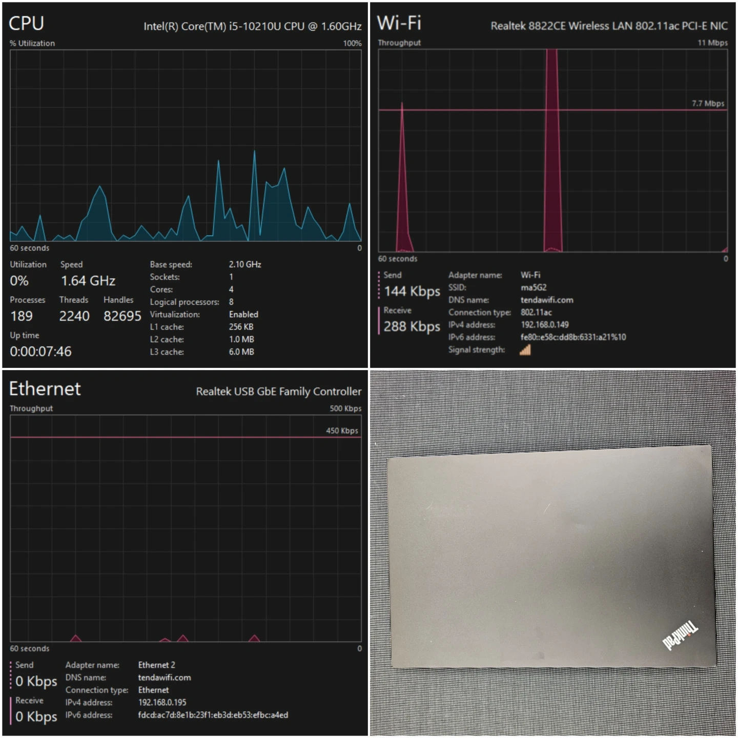 - Intel(R) Core(TM) i5-10210U CPU @ 1.60GHz (2.10 GHz) with turbo boost technology