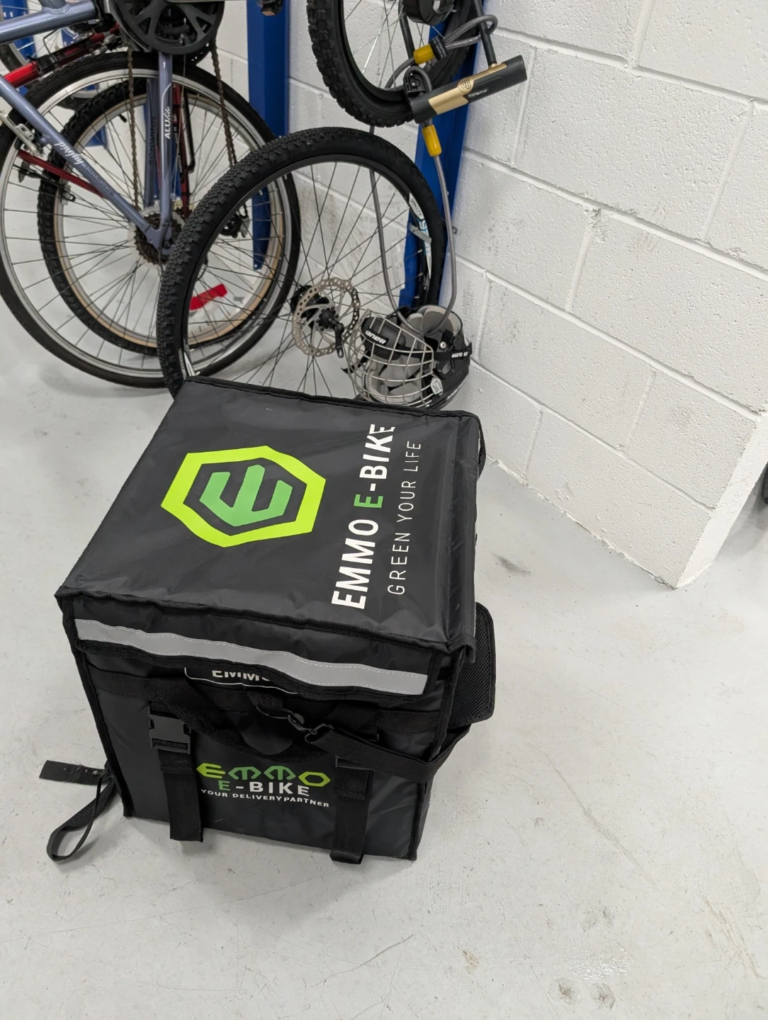 Selling a Medium EMMO E-Bike delivery bag! It's in great shape and ready to help you with your deliveries. The bag is insulated to keep food warm or cold, and it's spacious enough to carry multiple orders. Get ready to green your life!