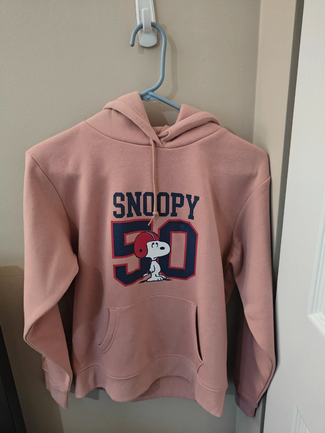 A cute Snoopy 50 hoodie in a lovely pink colour! It's perfect for casual wear and showing off your love for the Peanuts gang.