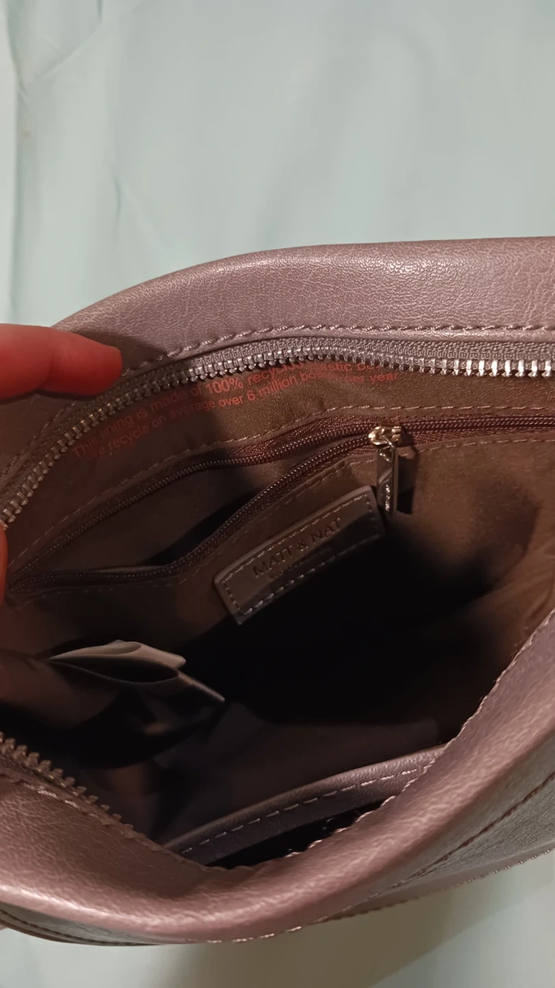Selling a Matt & Nat crossbody bag! It's in great condition and ready for a new owner. Perfect for carrying your essentials in style. The interior lining is made of 100% recycled materials, so you can feel good about your purchase!