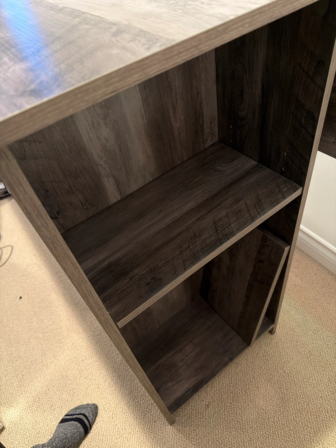 Grey Wood Grain Kitchen Table with 2 Shelf