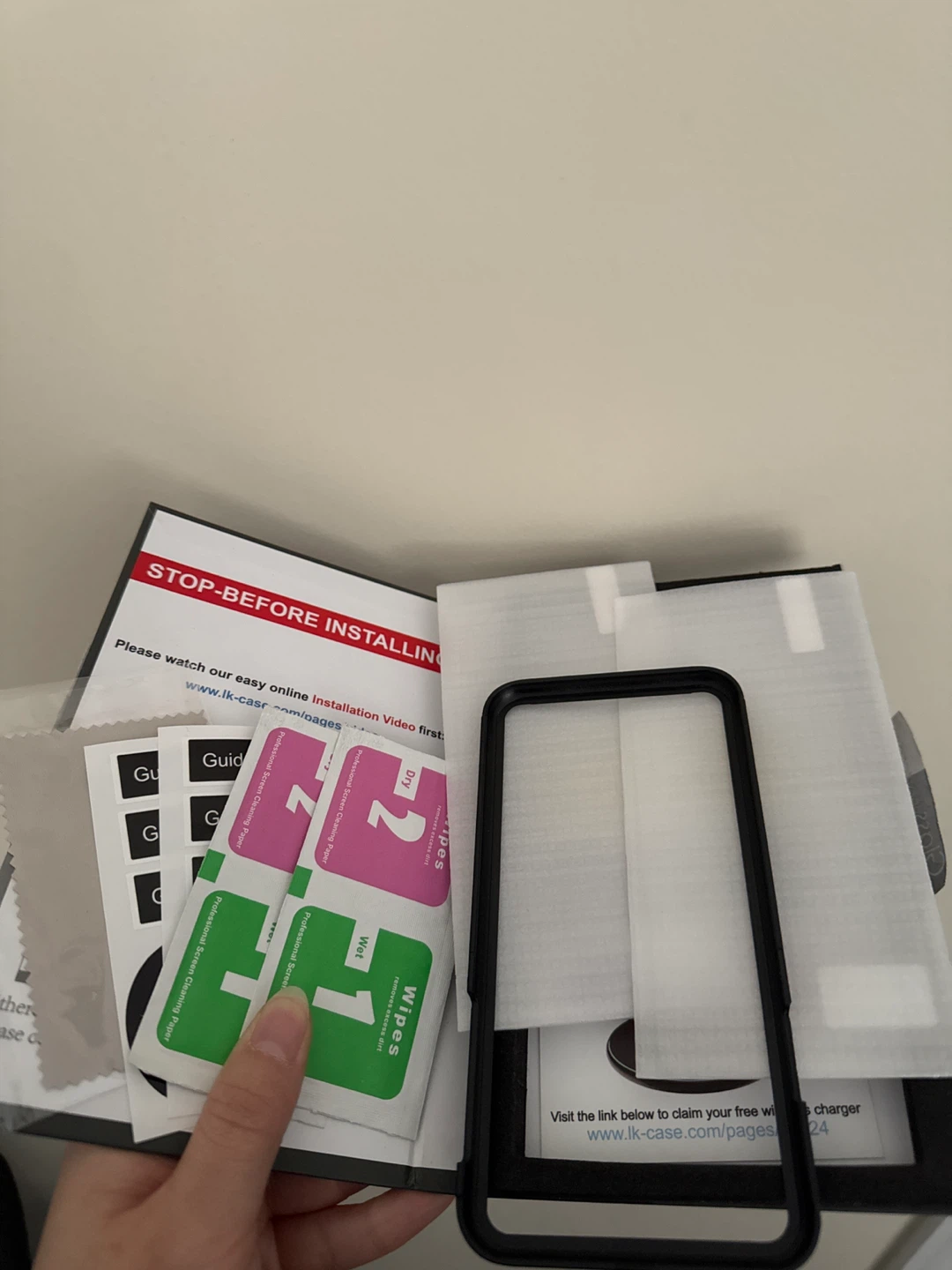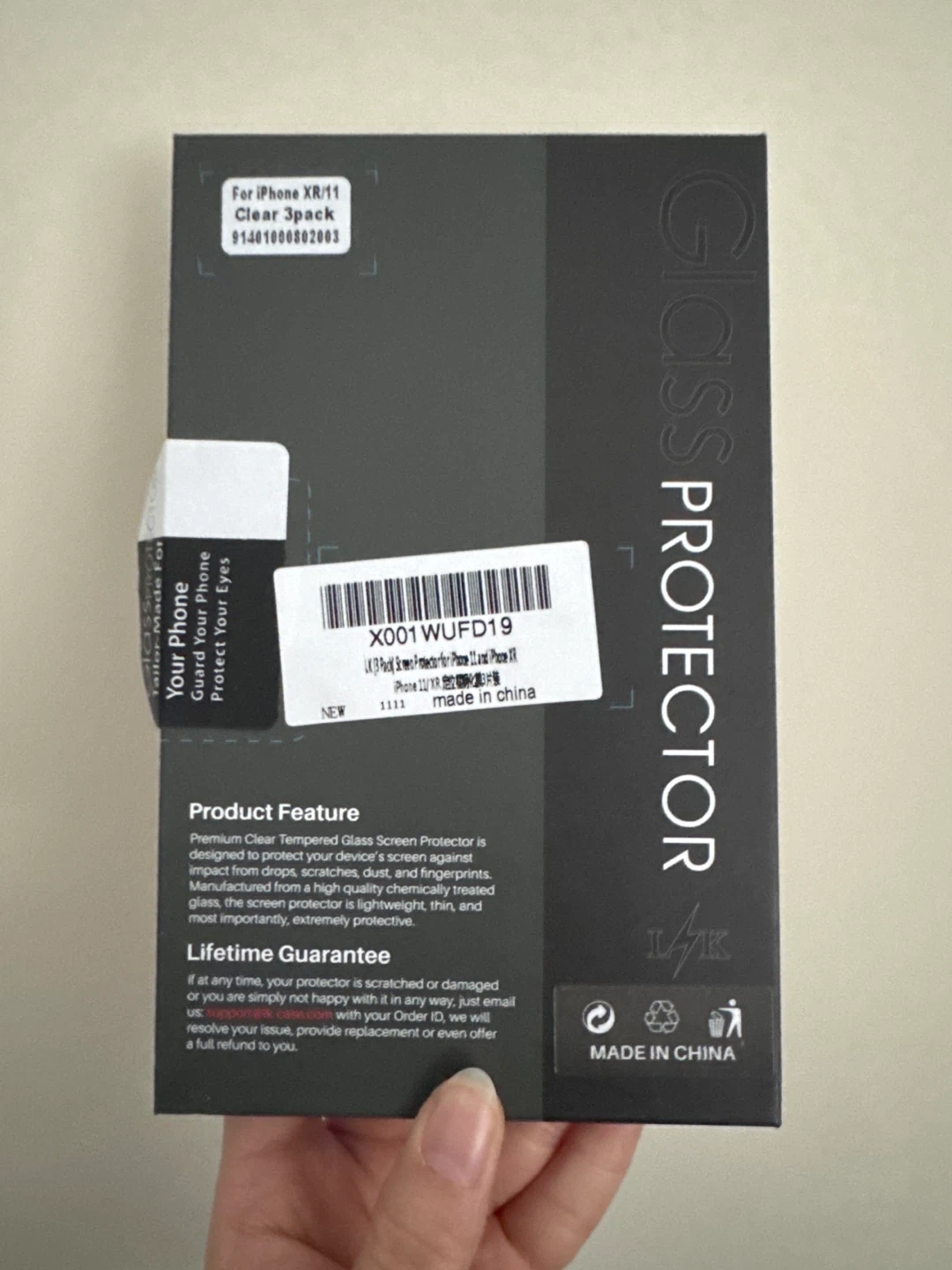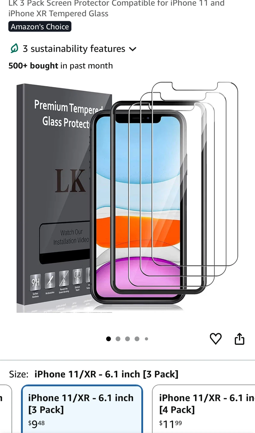 Set of 2 LK screen protector for iPhone 11/XR. This is premium tempered glass protectors. It comes with the wipes and guide stickers to help with installation. Designed to be protective and durable, scratch-resistant, and ultra-clear with high sensitivity