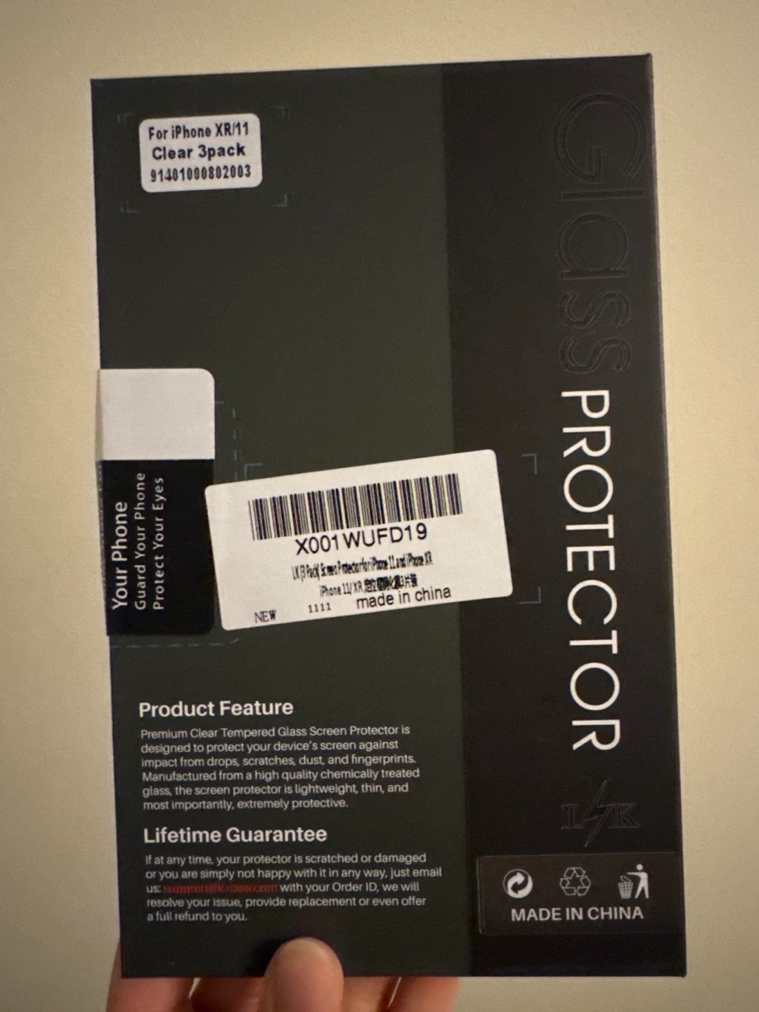 Set of 2 LK screen protector for iPhone 11/XR. This is premium tempered glass protectors. It comes with the wipes and guide stickers to help with installation. Designed to be protective and durable, scratch-resistant, and ultra-clear with high sensitivity