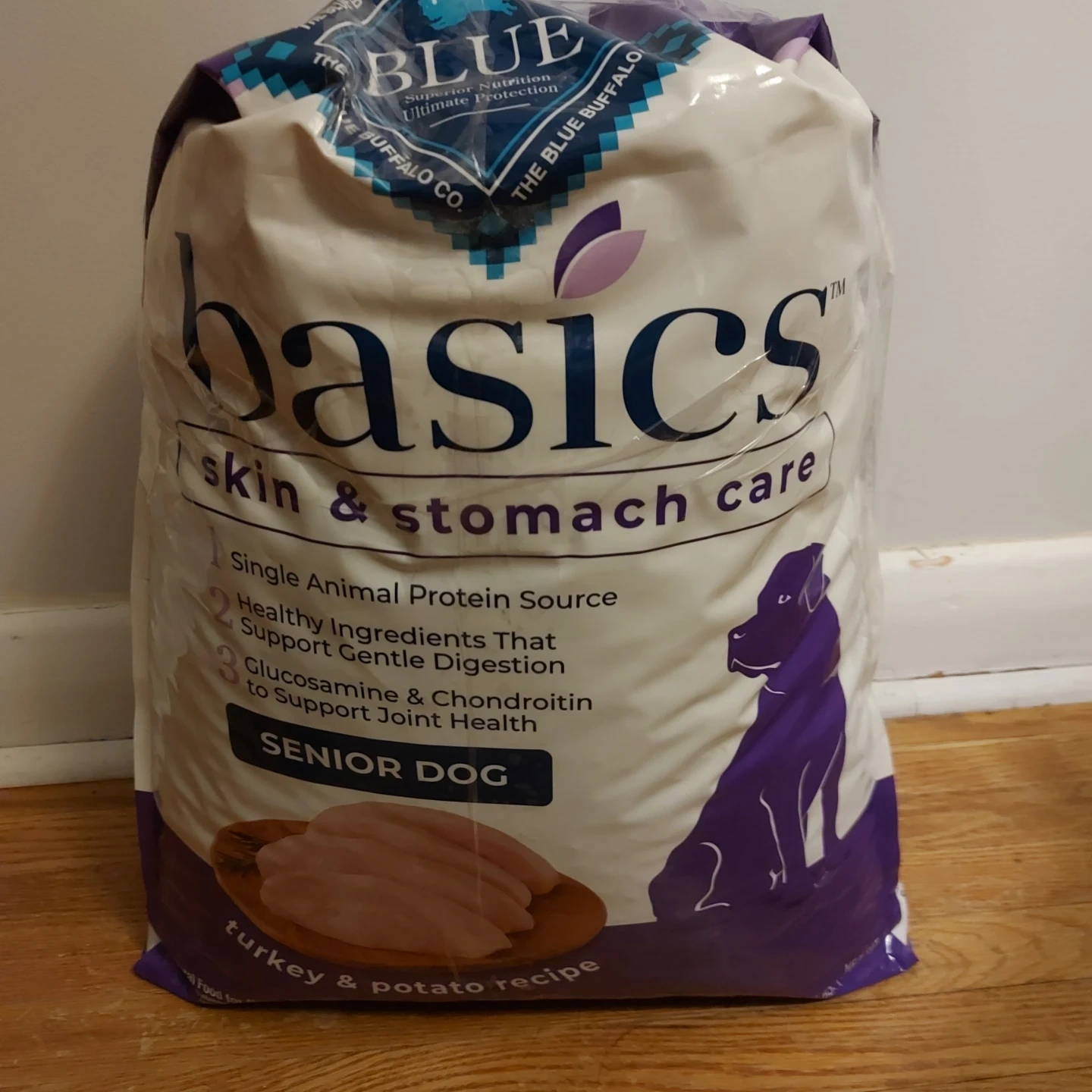 This is a turkey and potato recipe, perfect for senior dogs with sensitive digestion. It is a single animal protein source with healthy ingredients that support gentle digestion and glucosamine and chondroitin to support joint health.