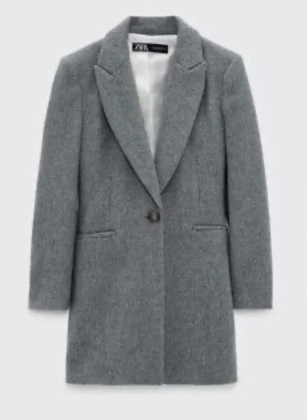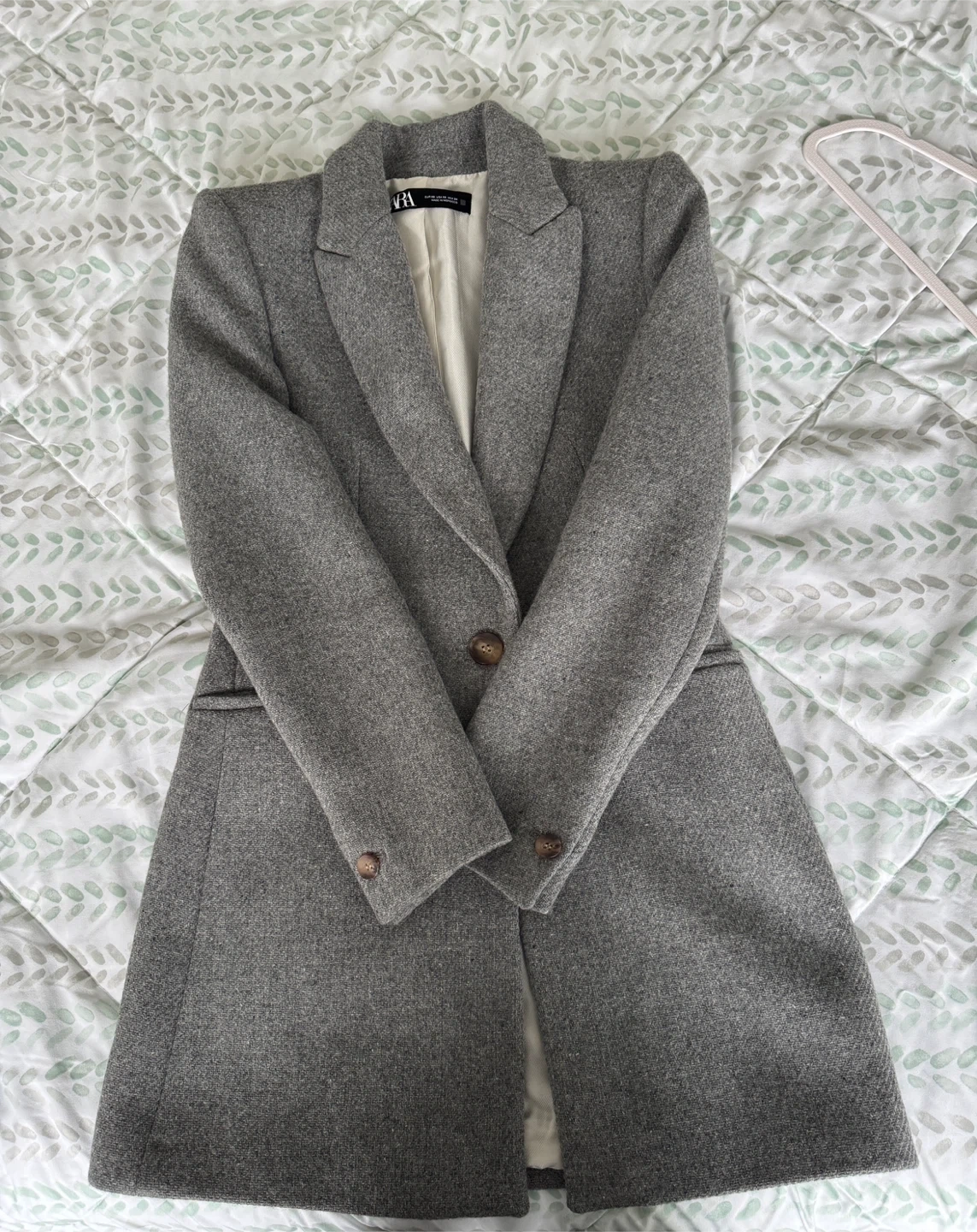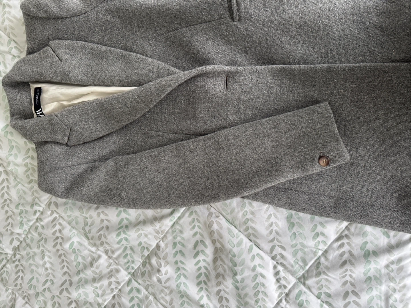 Selling a Zara wool blend coat in grey. It's a stylish and versatile piece for your wardrobe. Perfect for layering during the cooler months!