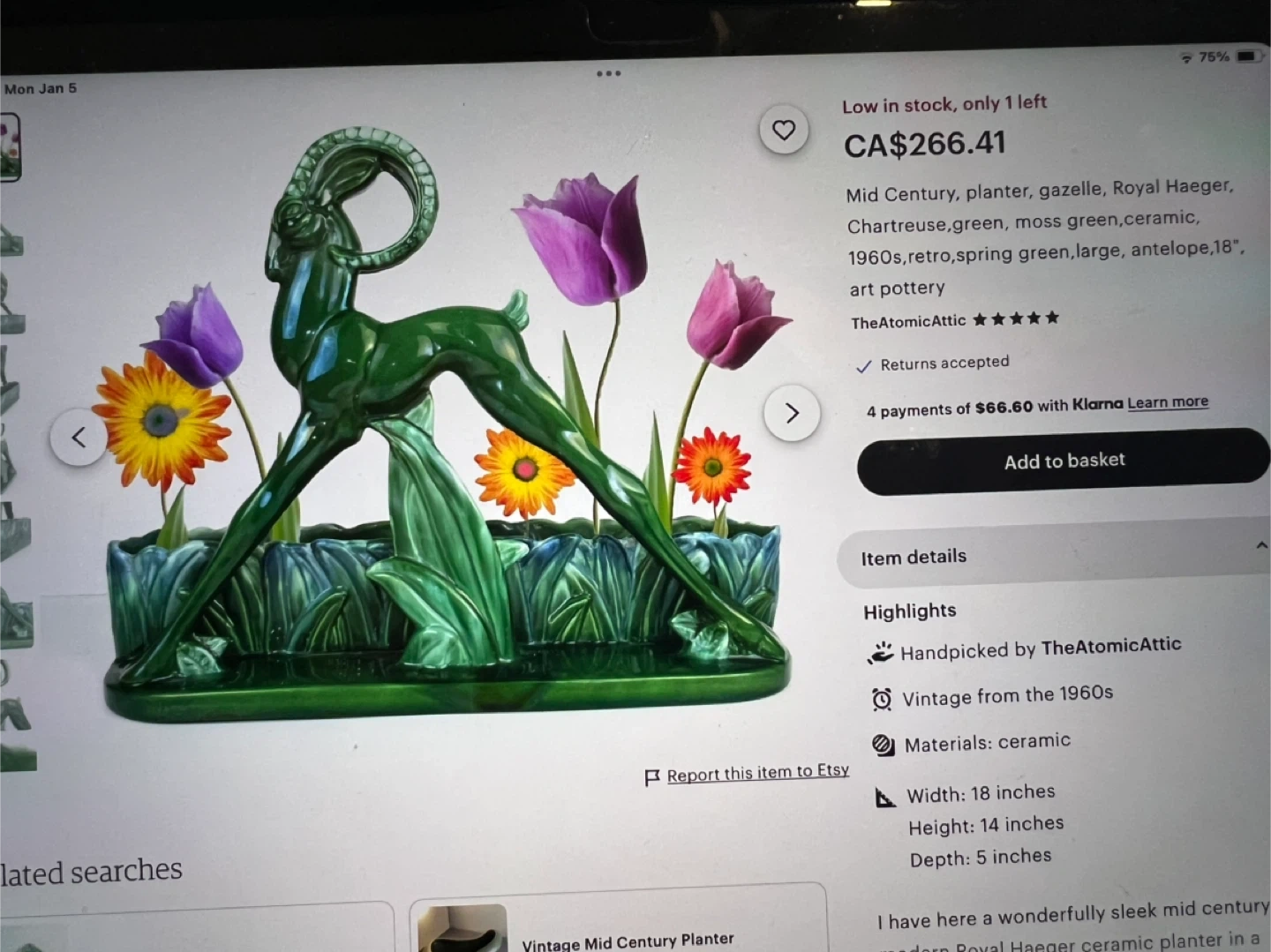 Buy & SellHome decorations. Take them allHome decorations. Take them all$15Gazelle pottery. Clown. Ducks and vaseWHERE TO MEETMeet nearbyView MapSELLERDJMedway16435 reviews0 chats·0 favorites·6 viewsSEND CHAT TO SELLERHi DJ! I’m interested in your listing.Hi DJ! I’m interested in your listing.Get the Karrot app to chatSign In to chat