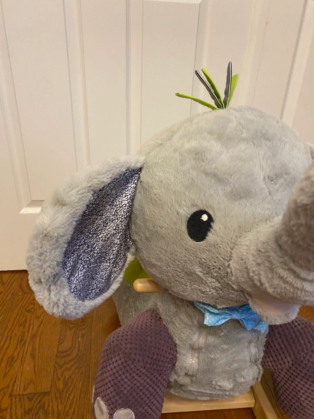 Sounds from the Elephant trunk and ears will catch your child's attention, developing their sense of hearing and the colours and patterns will stimulate their eyes. A fun part is that you can also remove the head and start a puppet show. Plays music with a push of a button in back foot.