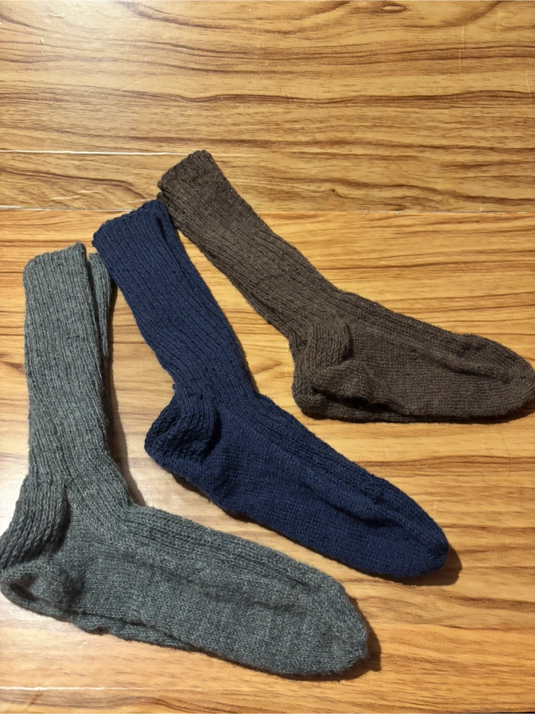 Examples pictures, are Men’s size socks (Men’s size 11 Grey, size 9 Navy, size 7 Brown)