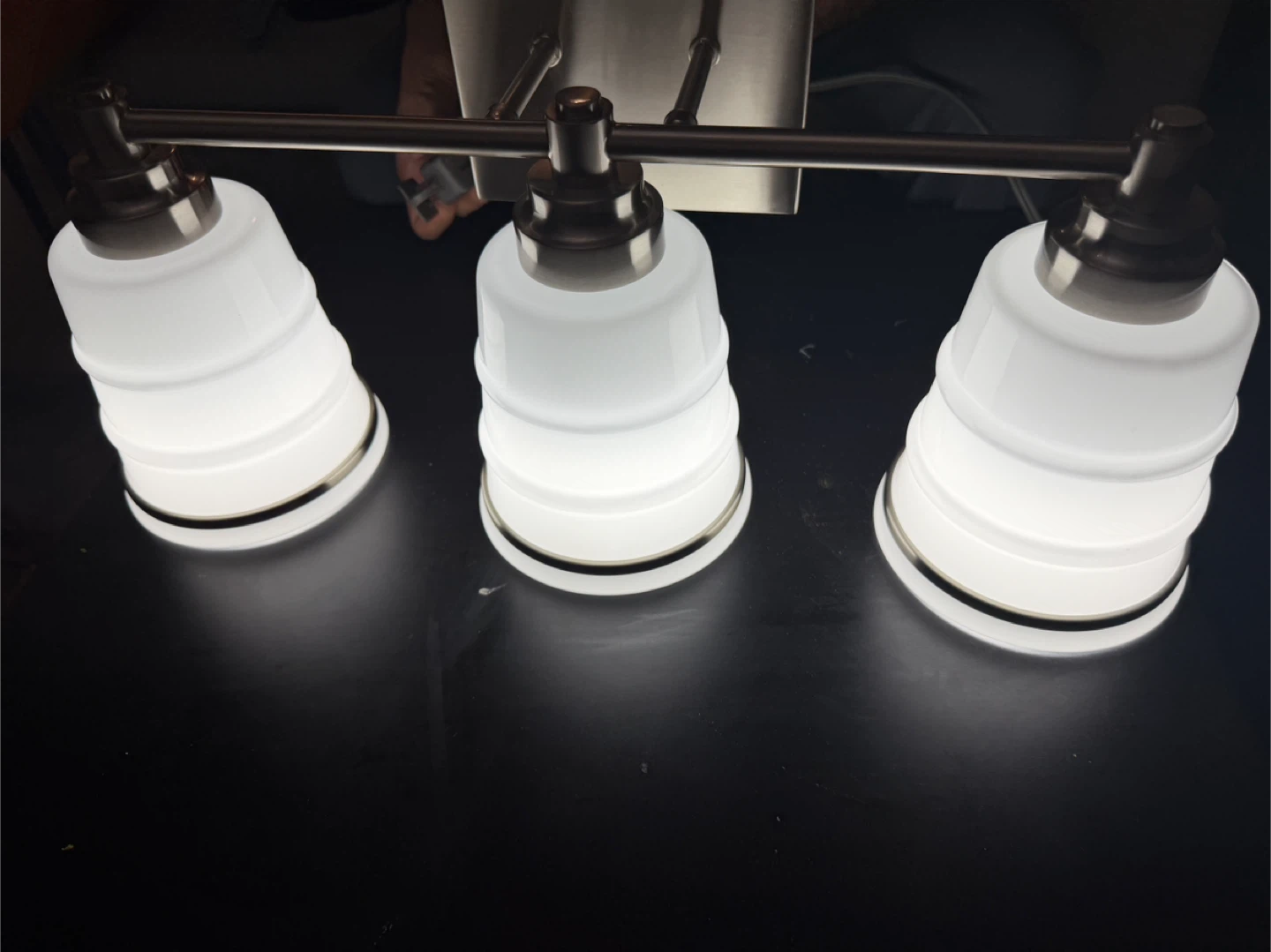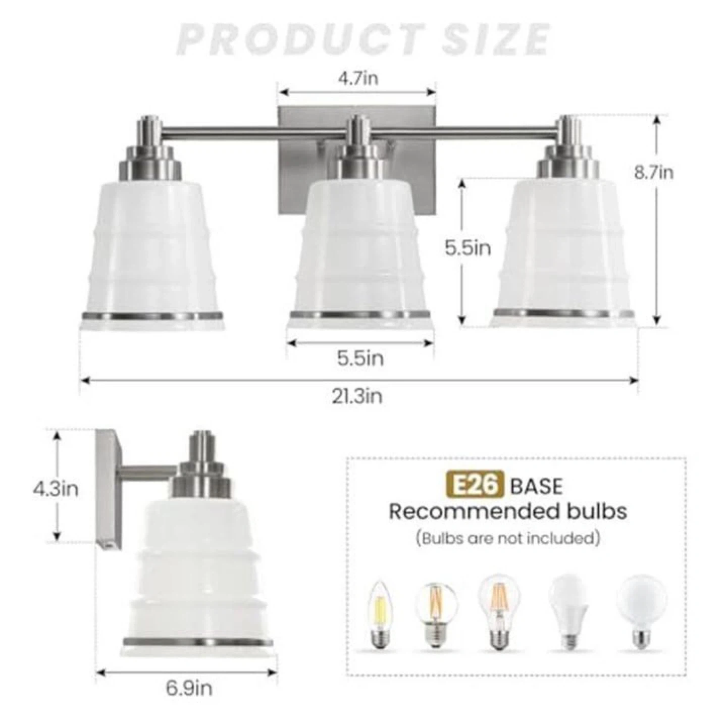 Selling a 3-light bathroom vanity light fixture. It features an E26 base for the bulbs (bulbs not included). Hardware included