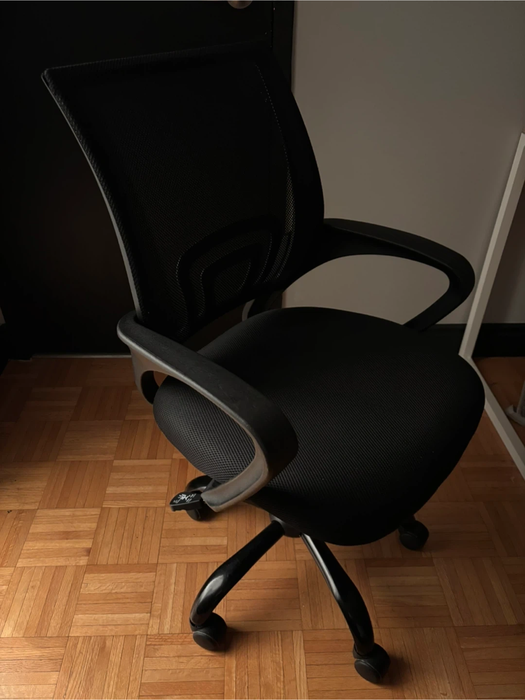 Buy & SellBlack Mesh Office ChairBlack Mesh Office Chair$60Looking to sell this comfortable black mesh office chair. It's in great shape and perfect for your home office or study space.WHERE TO MEETCheck LocationView MapSELLERYashviJackson Park100 reviews2 chats·1 favorites·16 viewsSEND CHAT TO SELLERHi Yashvi! I’m interested in your listing.Hi Yashvi! I’m interested in your listing.Get the Karrot app to chatSign In to chat
