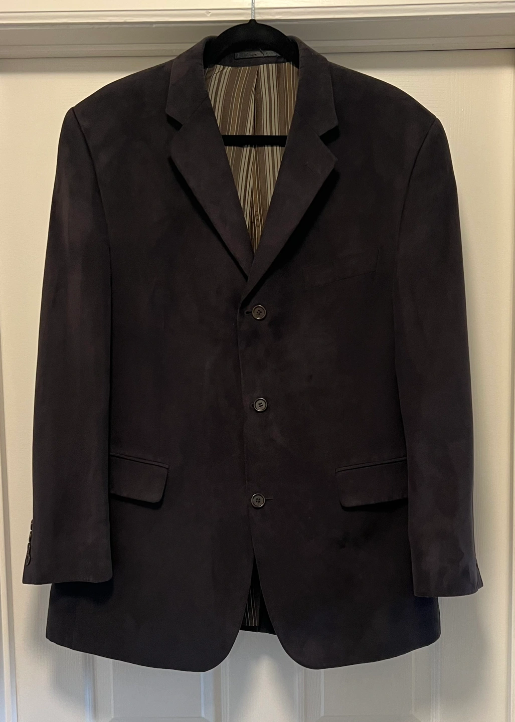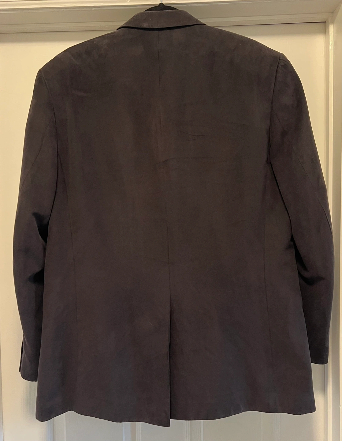 Frans Molenaar 3 button sport jacket. Jacket size is 42 R - Color is brownish. Material is ultra suede.