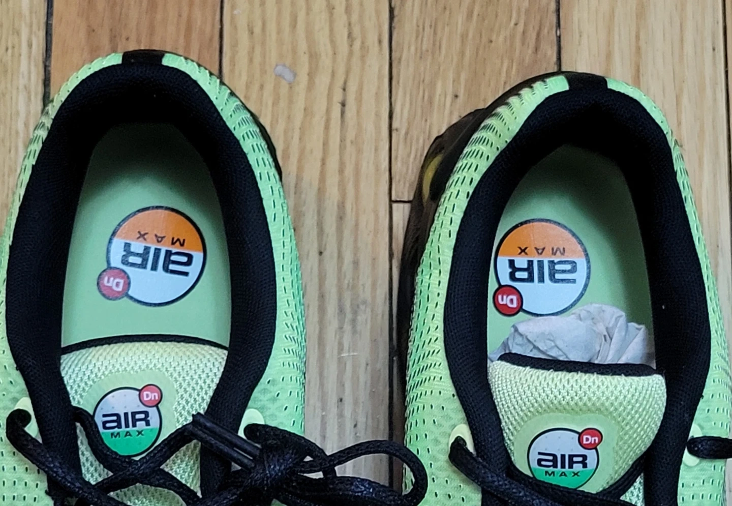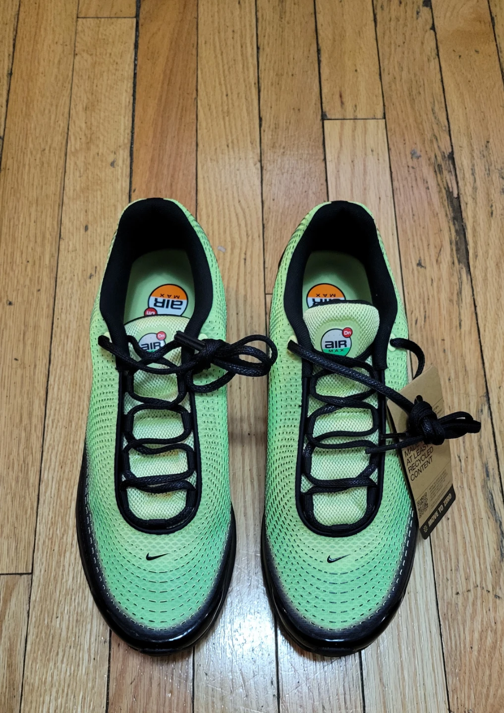 Selling a pair of Nike Air Max Dn sneakers in a vibrant lime green color. These are a US size 10.5.