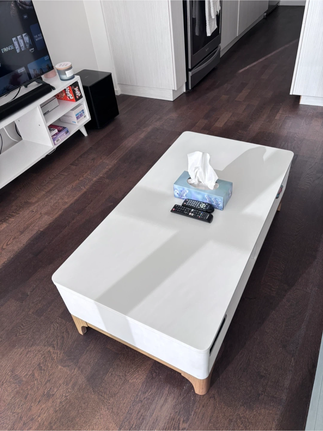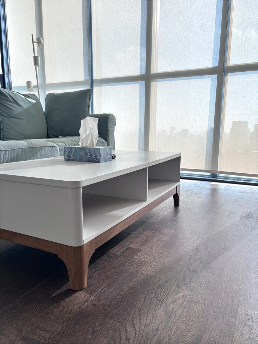 Simple and elegant coffee table from Structube featuring a wooden base accent and legs.