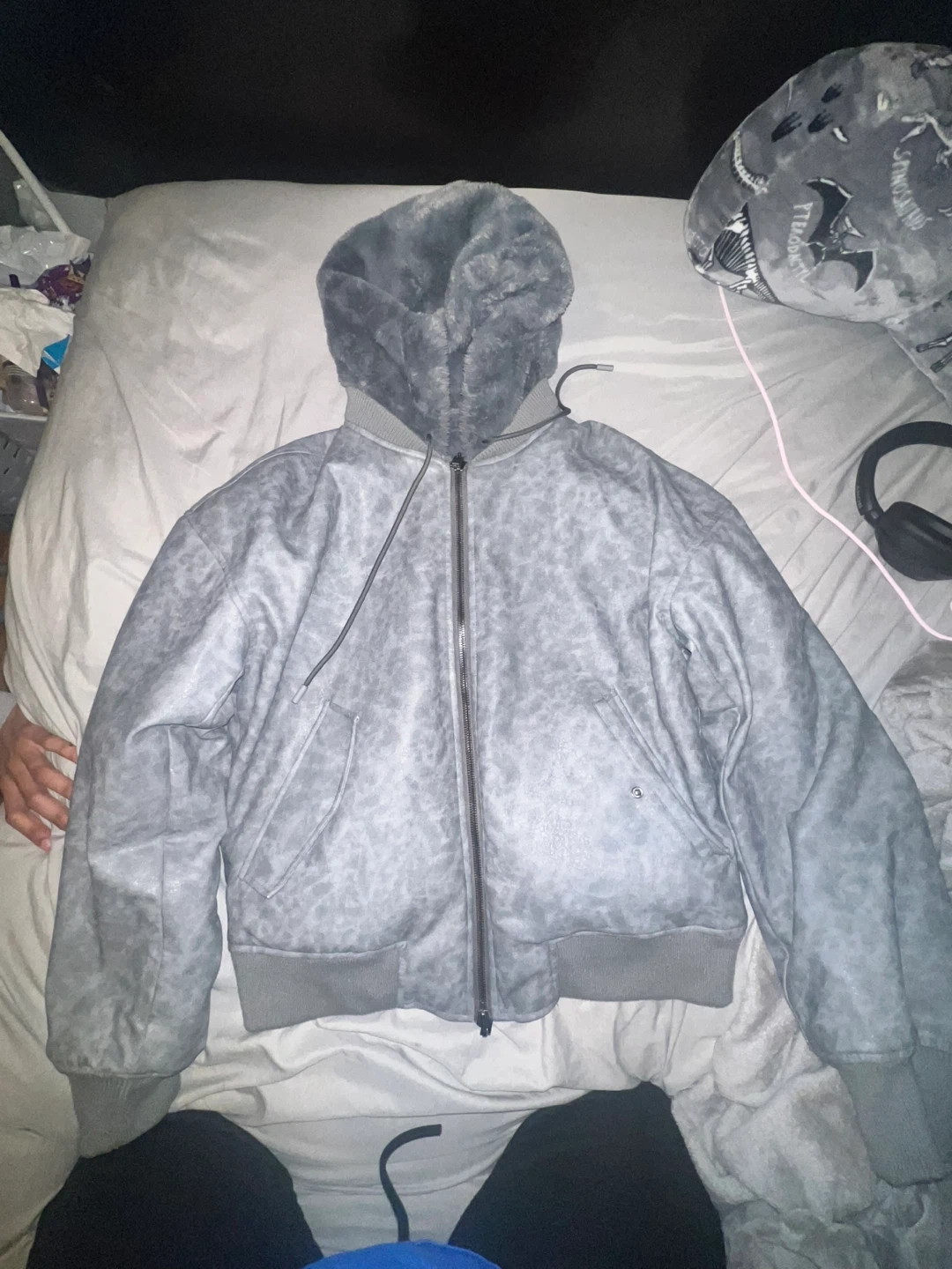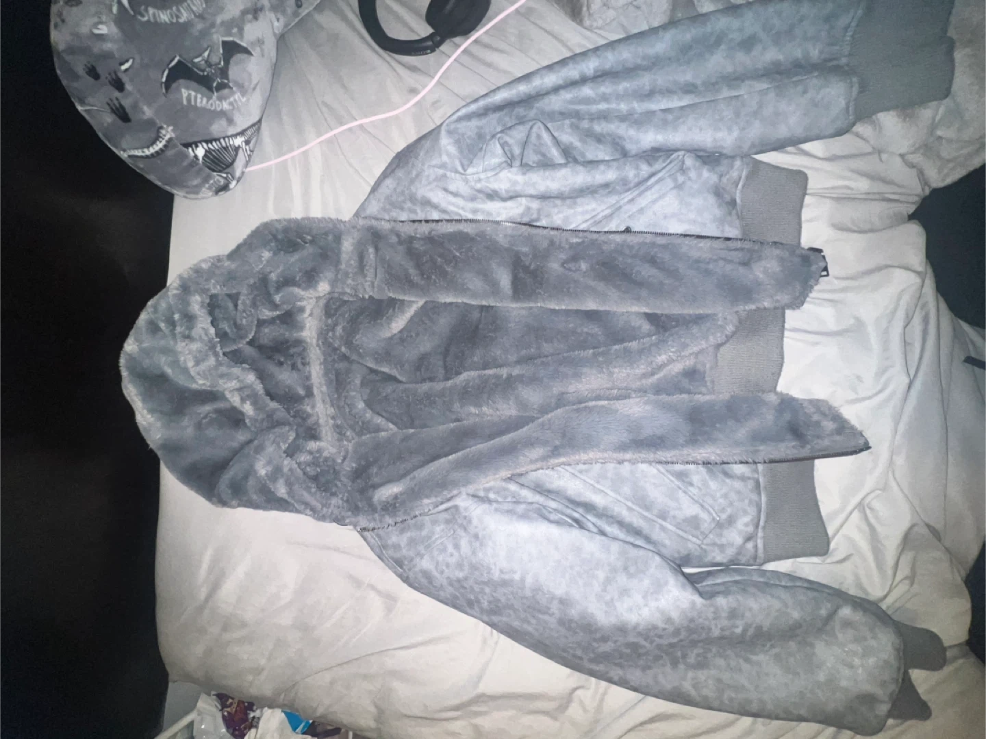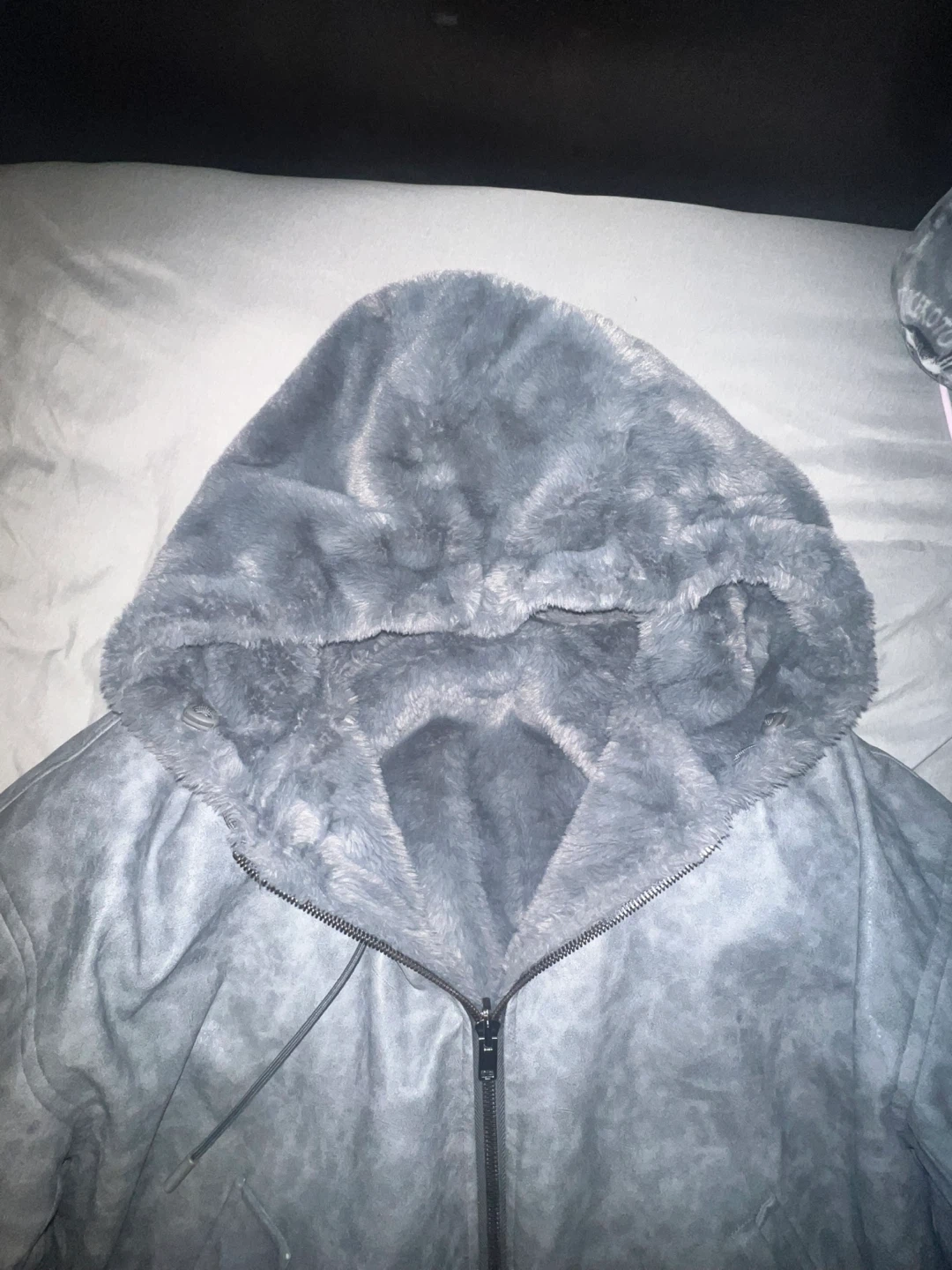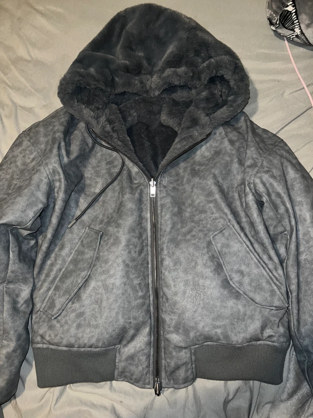 Selling a reversable faux fur hooded jacket in a size small. It's a stylish and cozy piece, perfect for adding some warmth to your wardrobe!