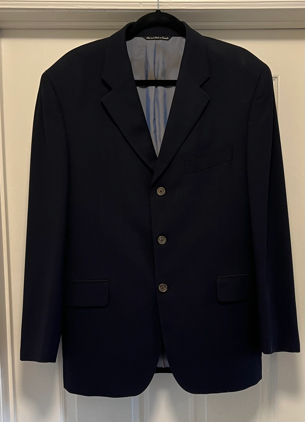 Stonehouse 3 button sport jacket. Jacket size is 40S but fits like a 42 R Color is black. Overall in very good condition. Side pockets still stiched. No stains, rips, tears or odour.