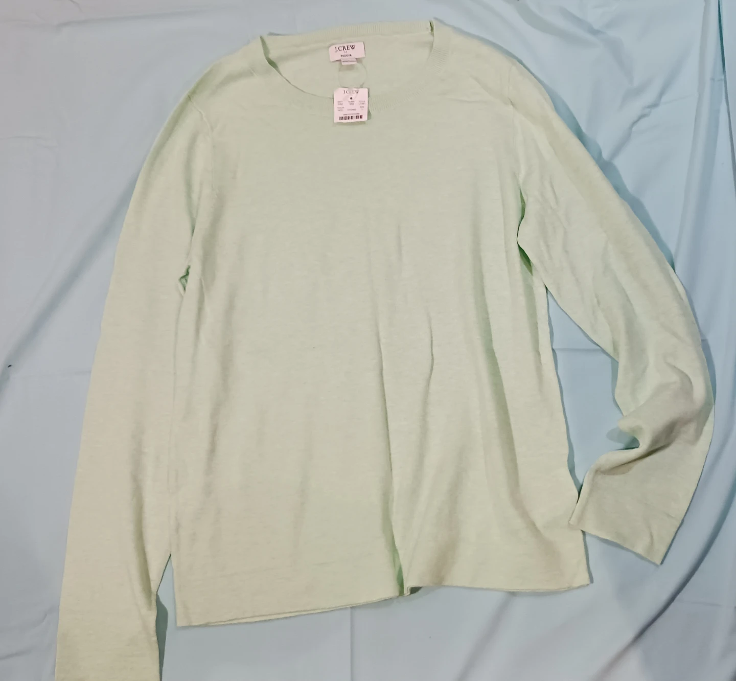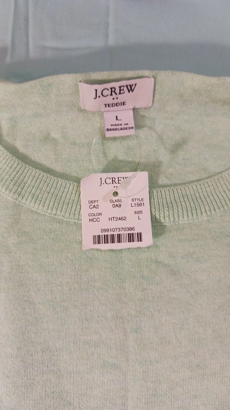 Selling a J.Crew Teddie sweater in size large. It's a lovely light green colour. Perfect for layering or wearing on its own!