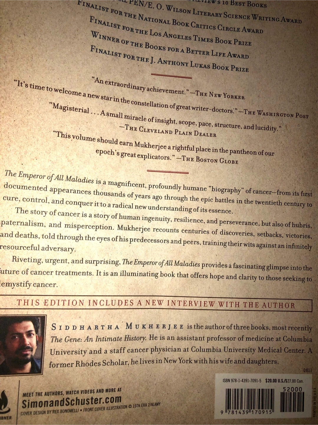 - "The Emperor of All Maladies: A Biography of Cancer" by Siddhartha Mukherjee. A Pulitzer Prize winner!