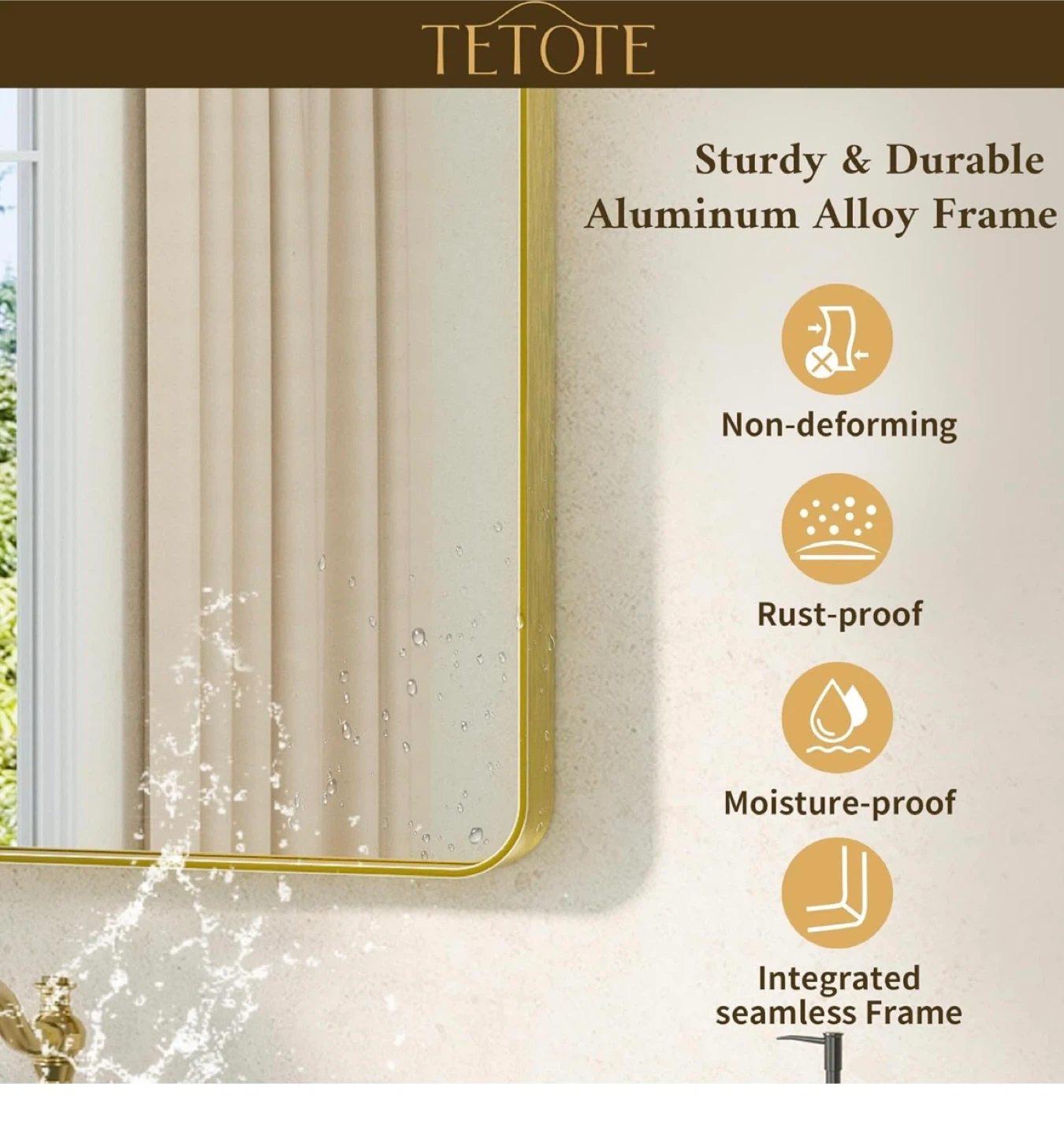 TETOTE 24x36 Inch Bathroom Mirror - Gold Frame