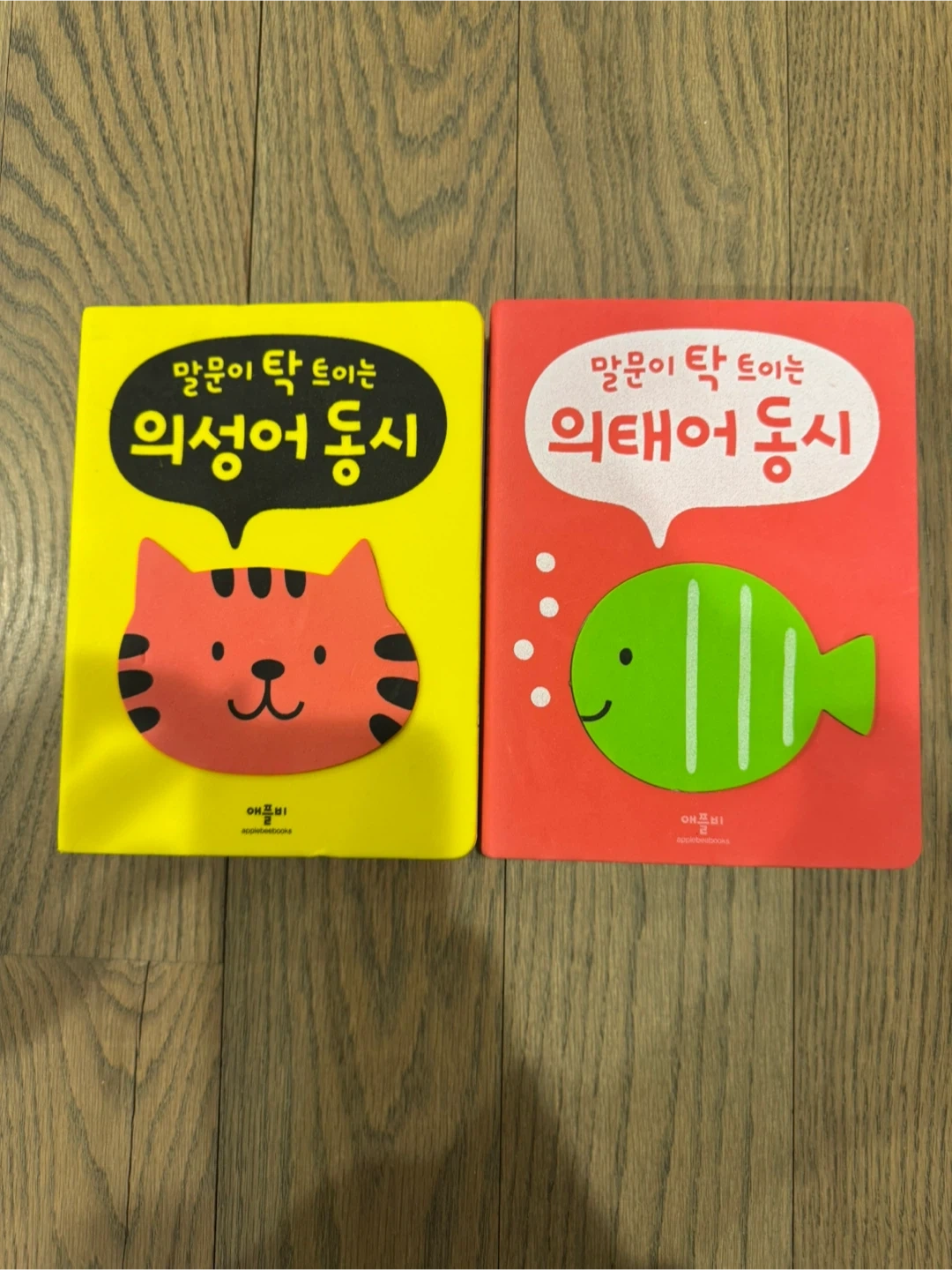 Selling two children's books from 애플비 (Applebee Books): 말문이 탁 트이는 의성어 동시 (onomatopoeia rhymes) and 말문 이 탁 트이는 의태어 동시 (mimetic word rhymes)
