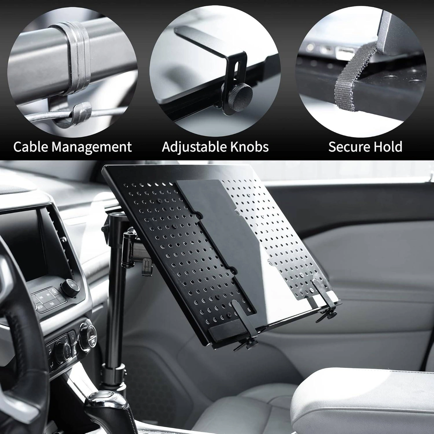 Fully Adjustable Extension, Notebook Stand for Trucks, Vans, and SUVs, Articulation and Height Adjustment, Black, MOUNT-CAR01