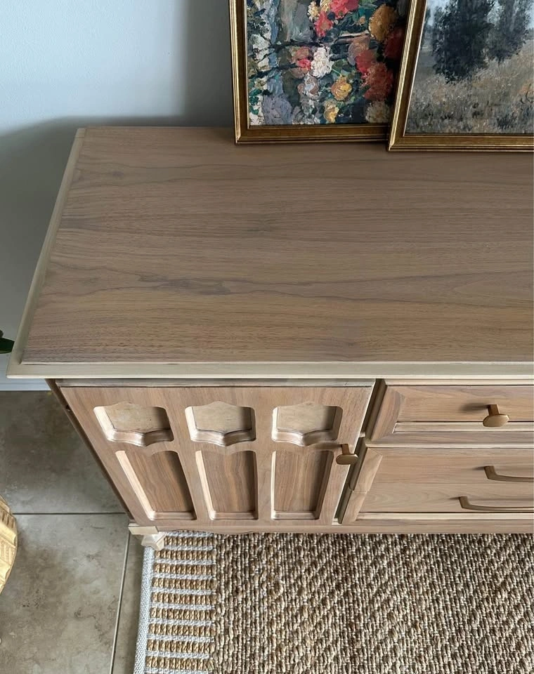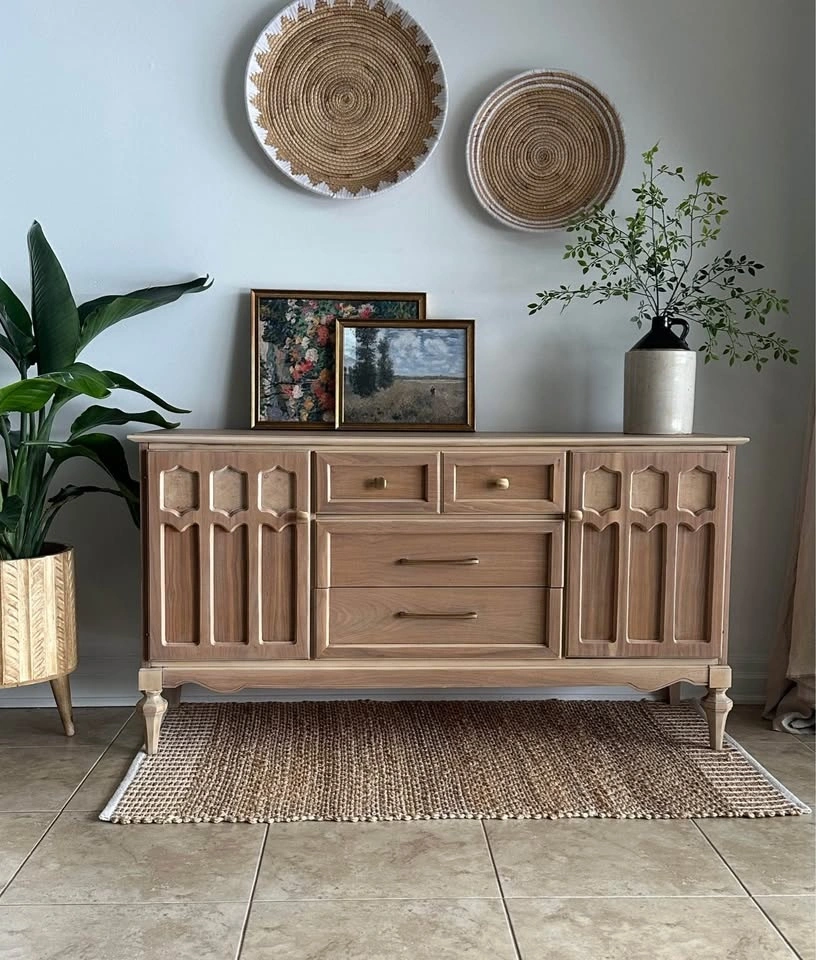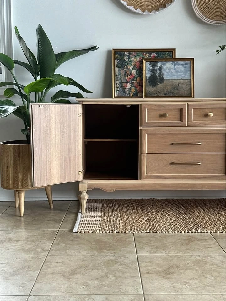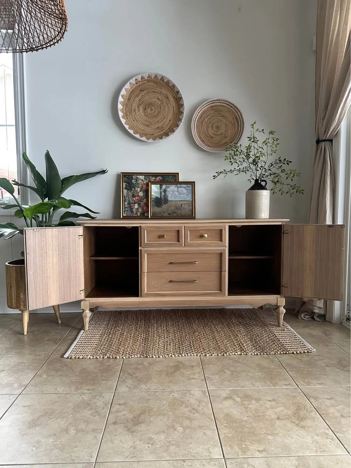 Professionally restored sideboard finished in a light, neutral wood that lets all the natural character shine
