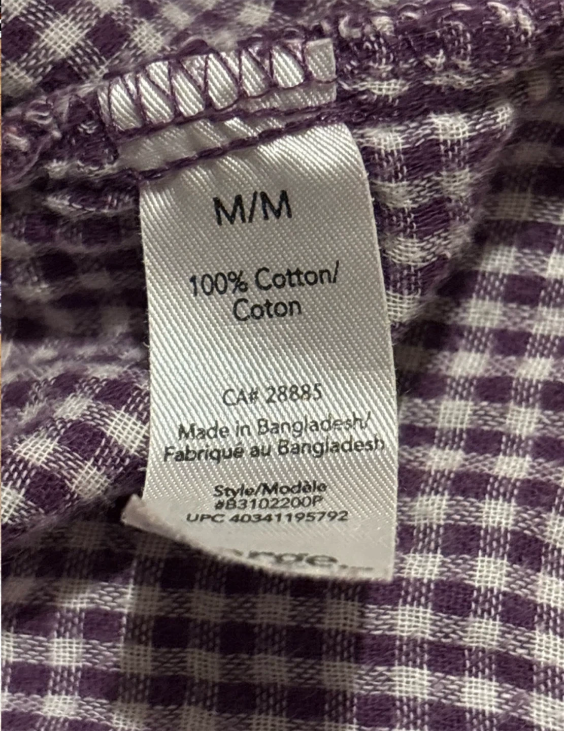 * Colour: Purple and White Plaid
