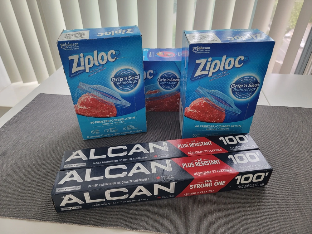 Unopened Zioloc medium freezer bags 3x60bags + 2 aluminum foils