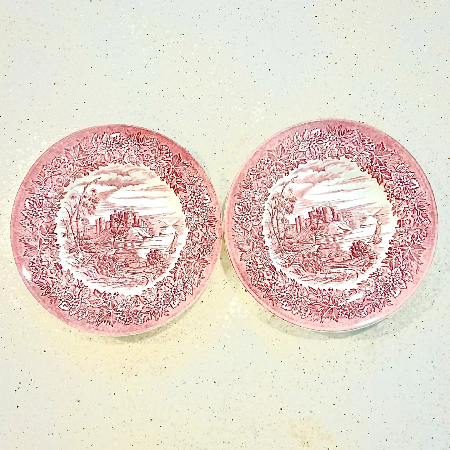 Antique Johnson Brothers Pink Transferware Plates Pair