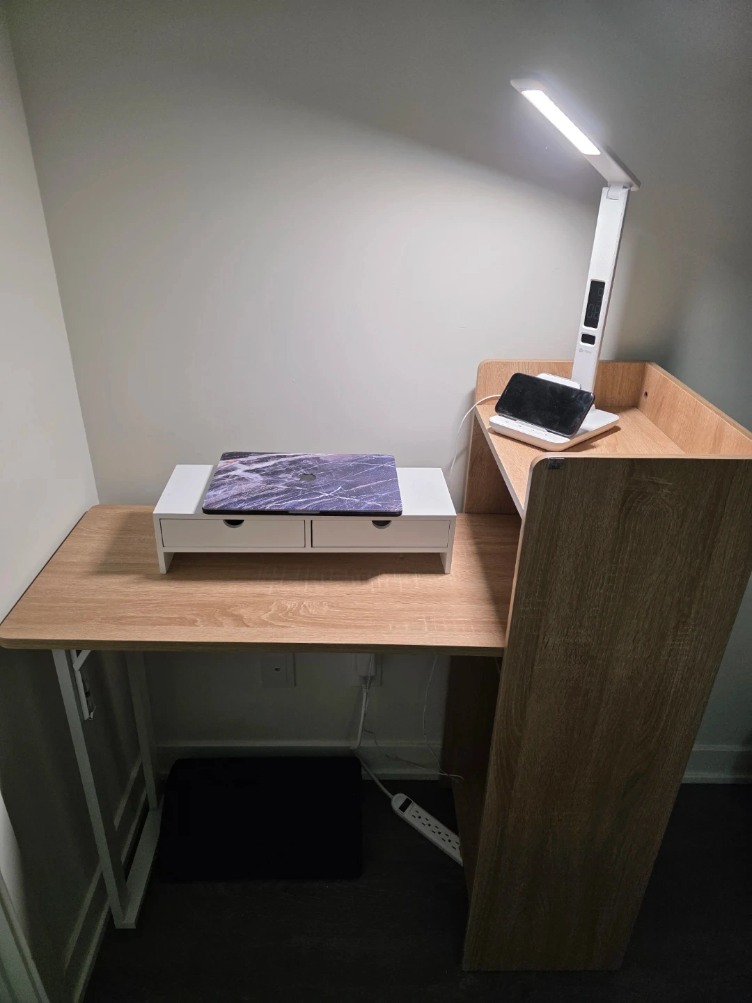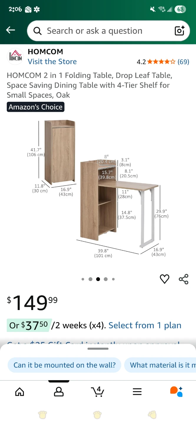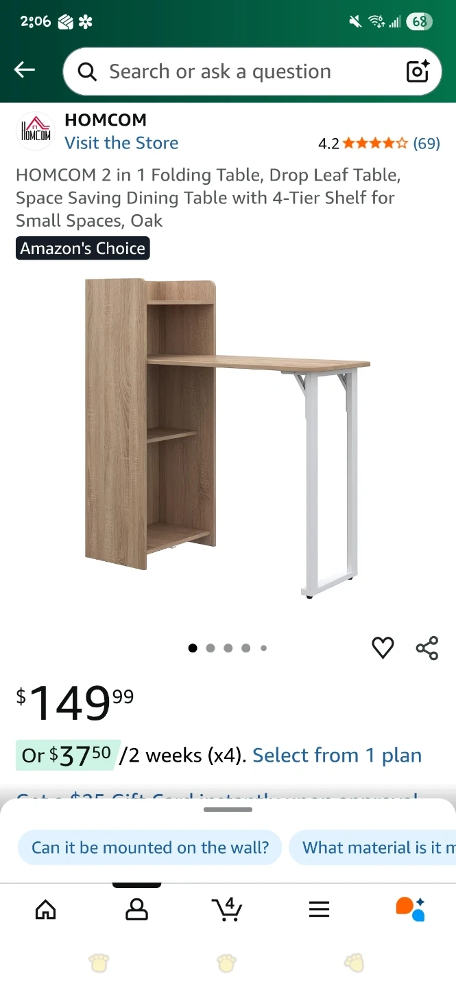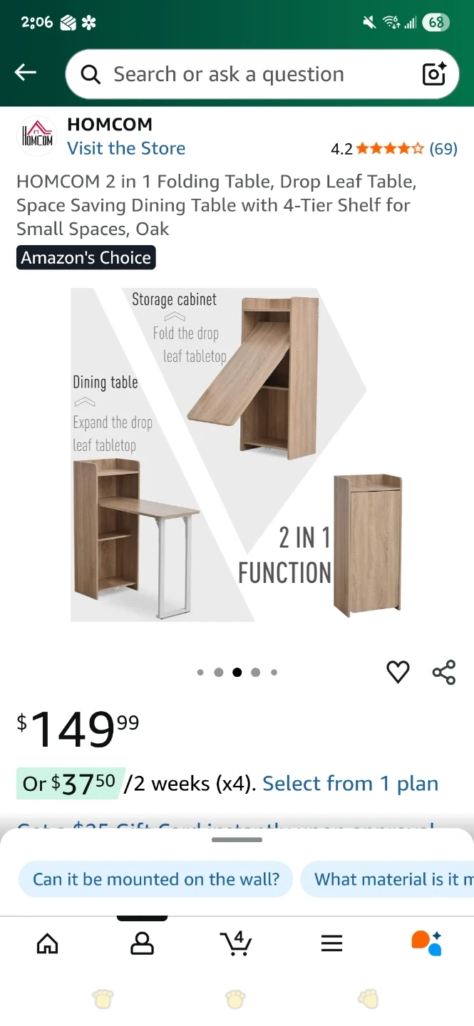 Selling a HOMCOM 2 in 1 Folding Table! It's a drop leaf table, perfect for saving space, and even has a 4-tier shelf. Great for small spaces! Originally bought for $149.99