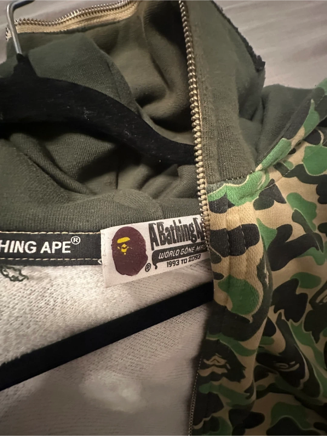 Selling a BAPE camo shark hoodie! It features the iconic shark design with tiger accents. Great for streetwear enthusiasts!